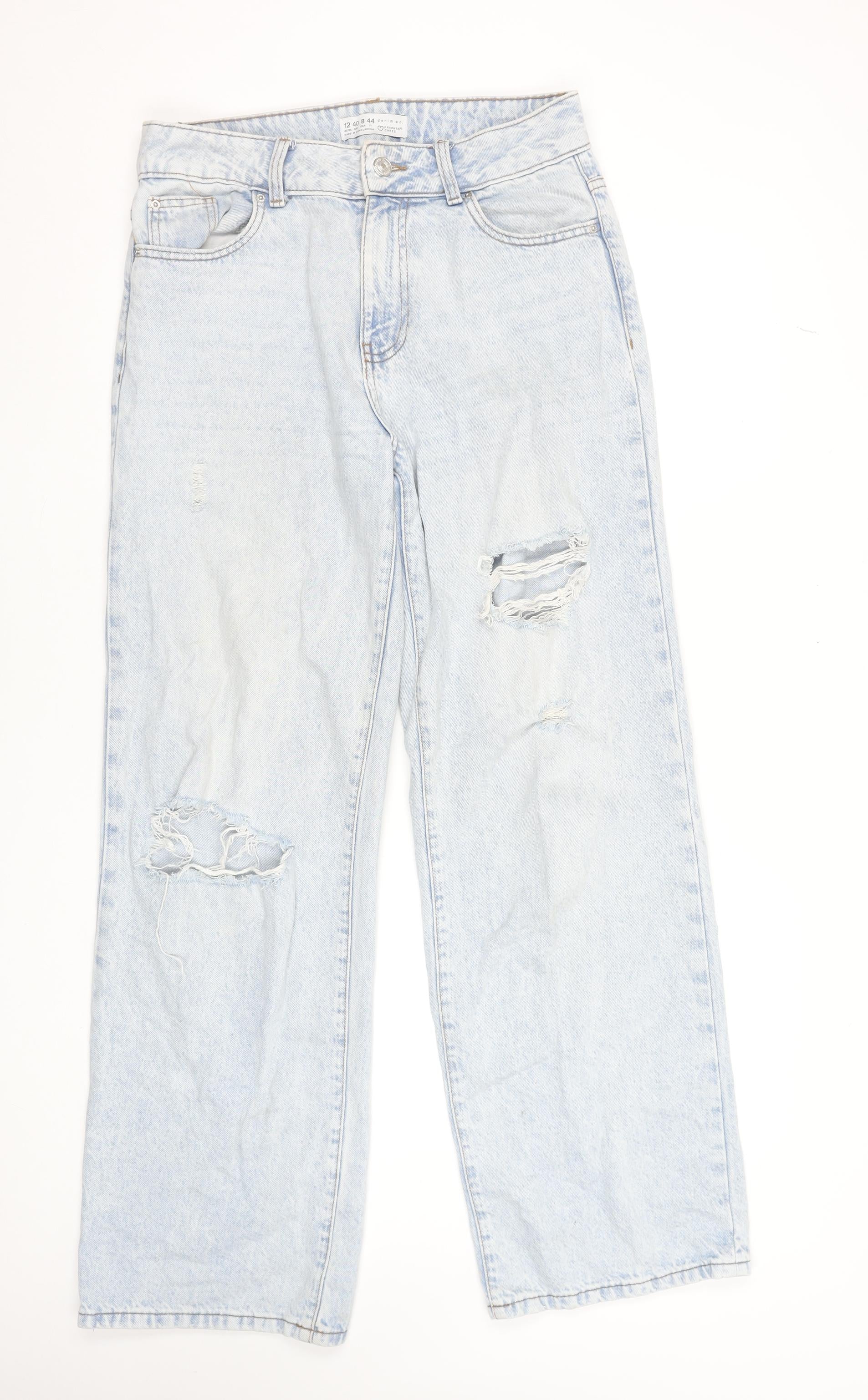 Primark Women Blue Distressed Straight High-Rise Jeans Size 12