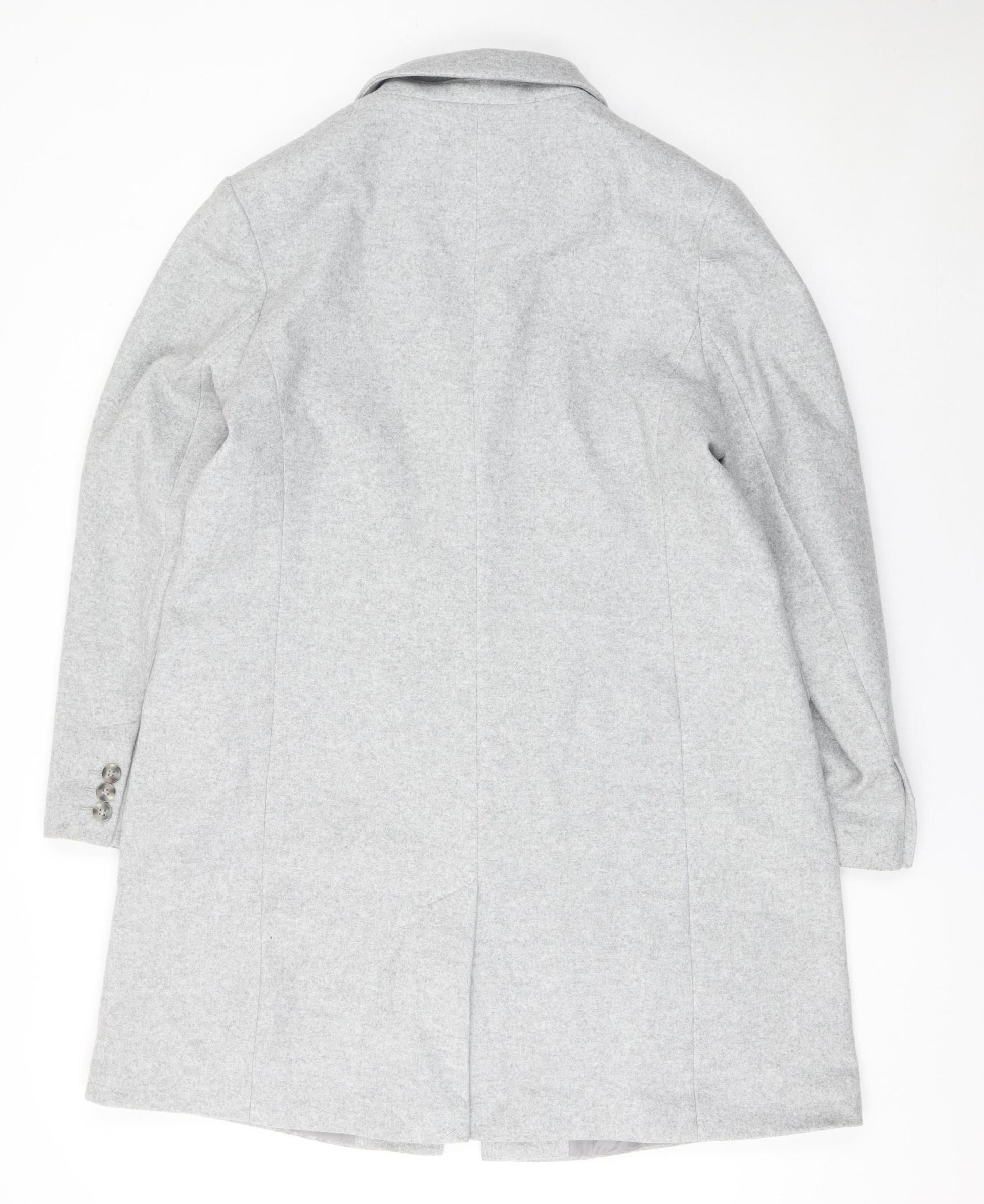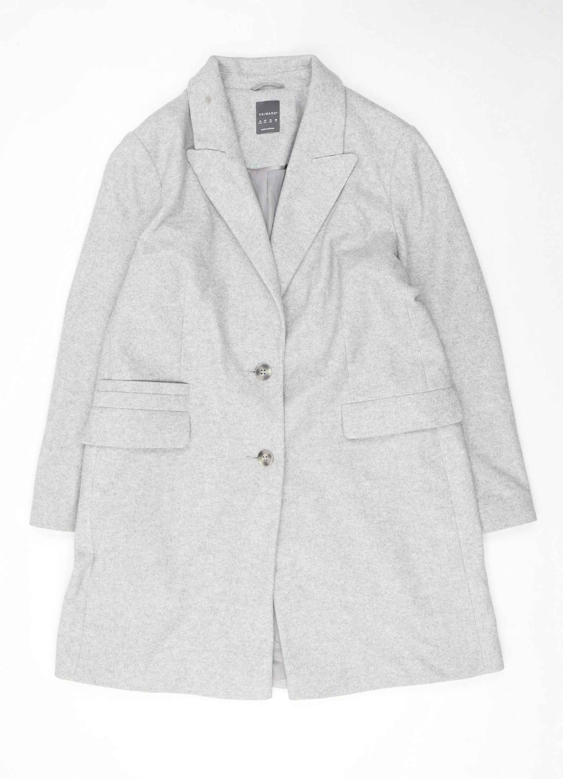 Primark Women Grey Mid-Length Polyester Overcoat Size 16