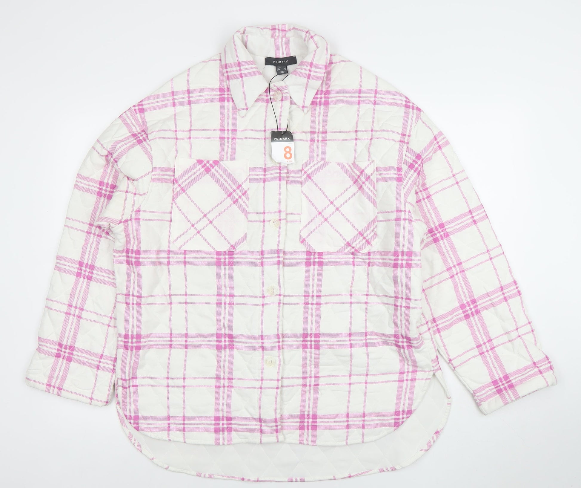 Primark Women Pink Check Quilted Long Sleeve Jacket Size 8