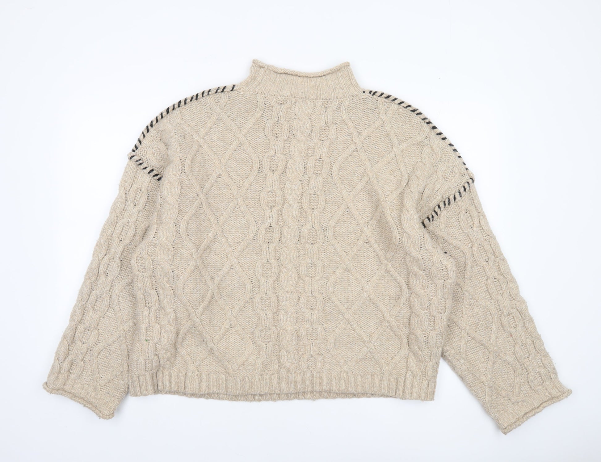 Primark Women’s Beige Cable-Knit Mock Neck Jumper Size L