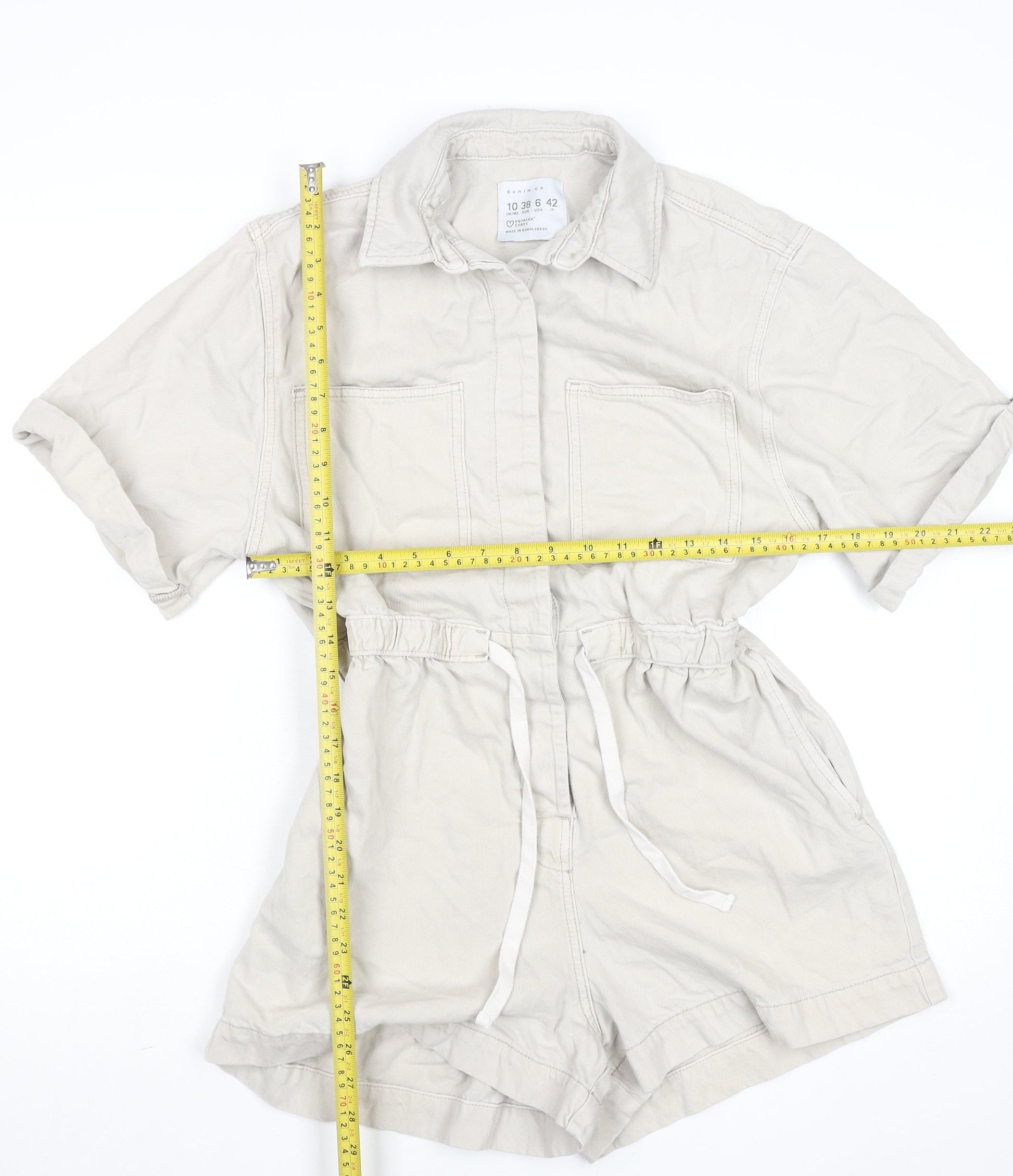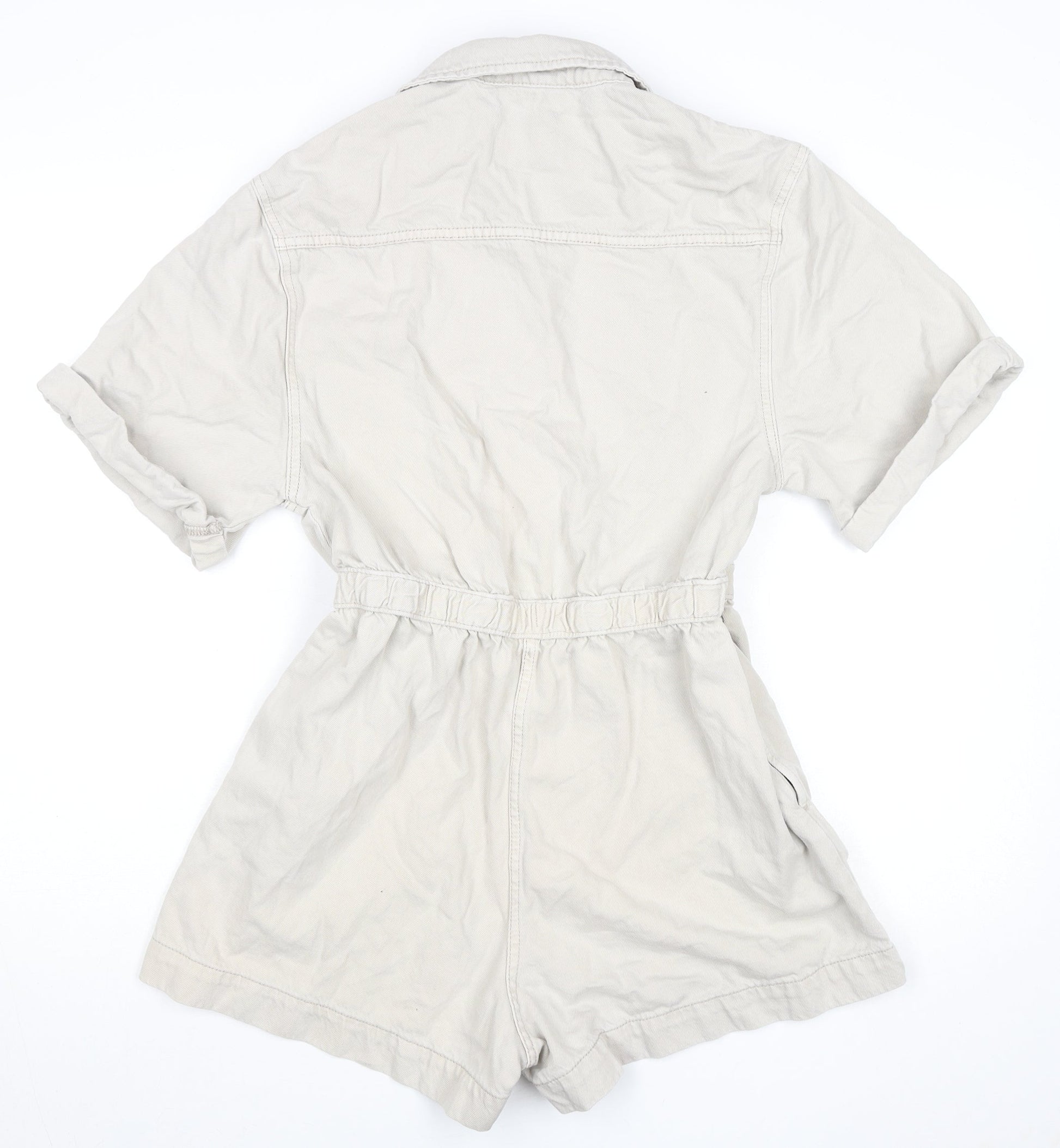 Primark Women’s Beige Cotton Collared Button Playsuit Size 10