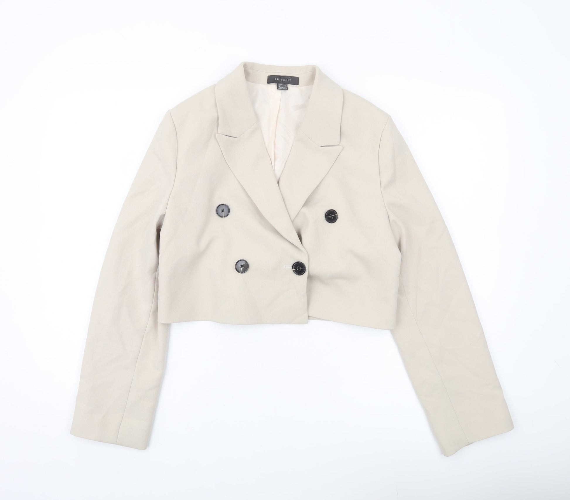 Primark Women’s Beige Cropped Double-Breasted Suit Jacket Size 12