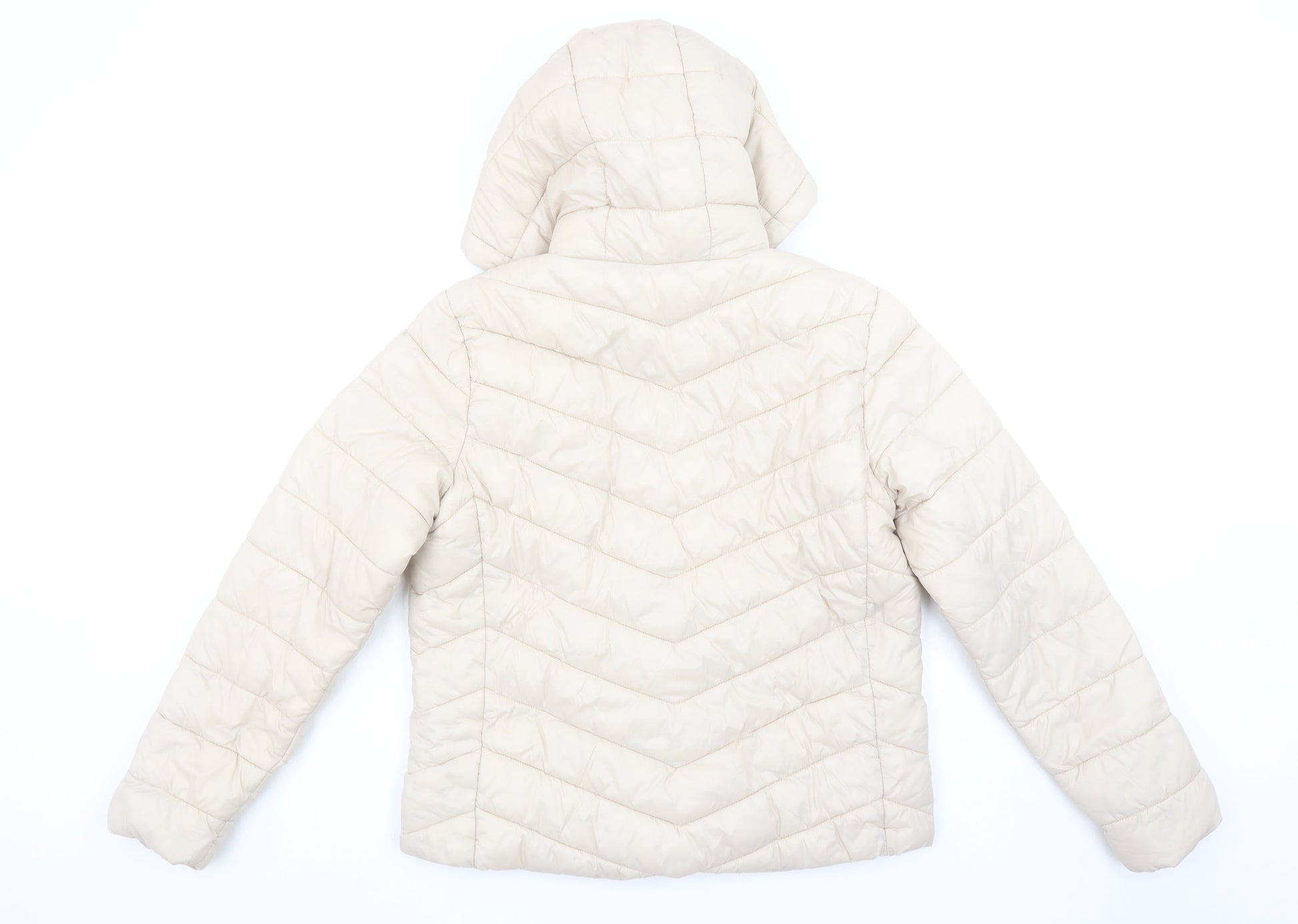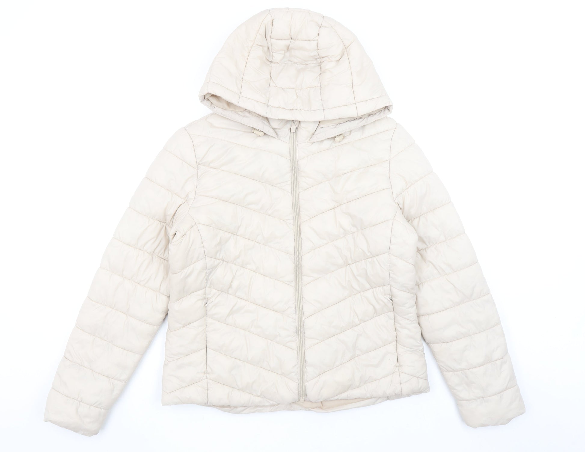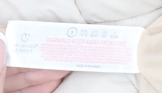 Primark Women’s Beige Puffer Jacket Hooded Size S 10-12 Quilted Zip Coat