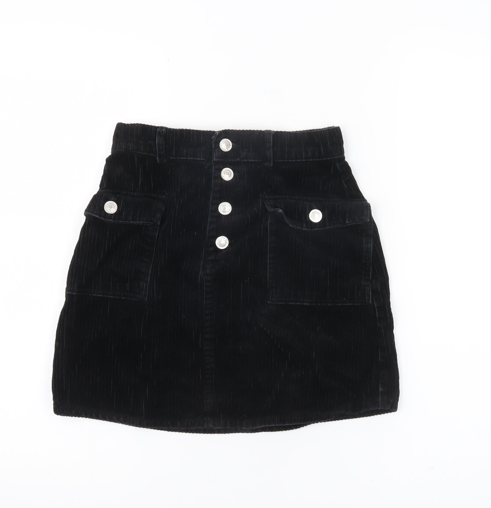 Primark Women’s Black Corduroy Mini Skirt Size 4 with Buttons