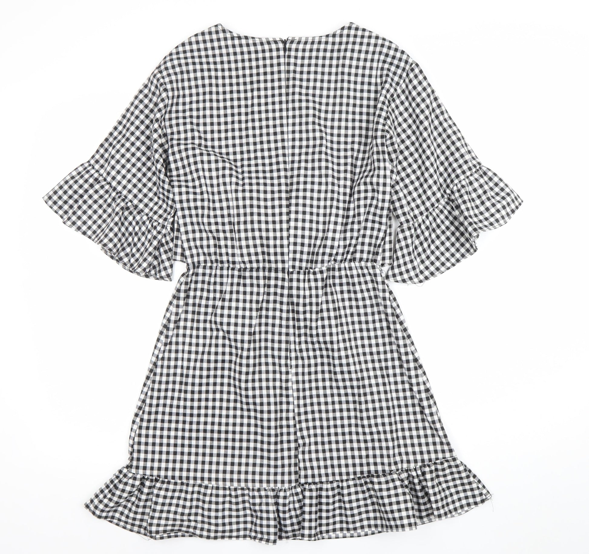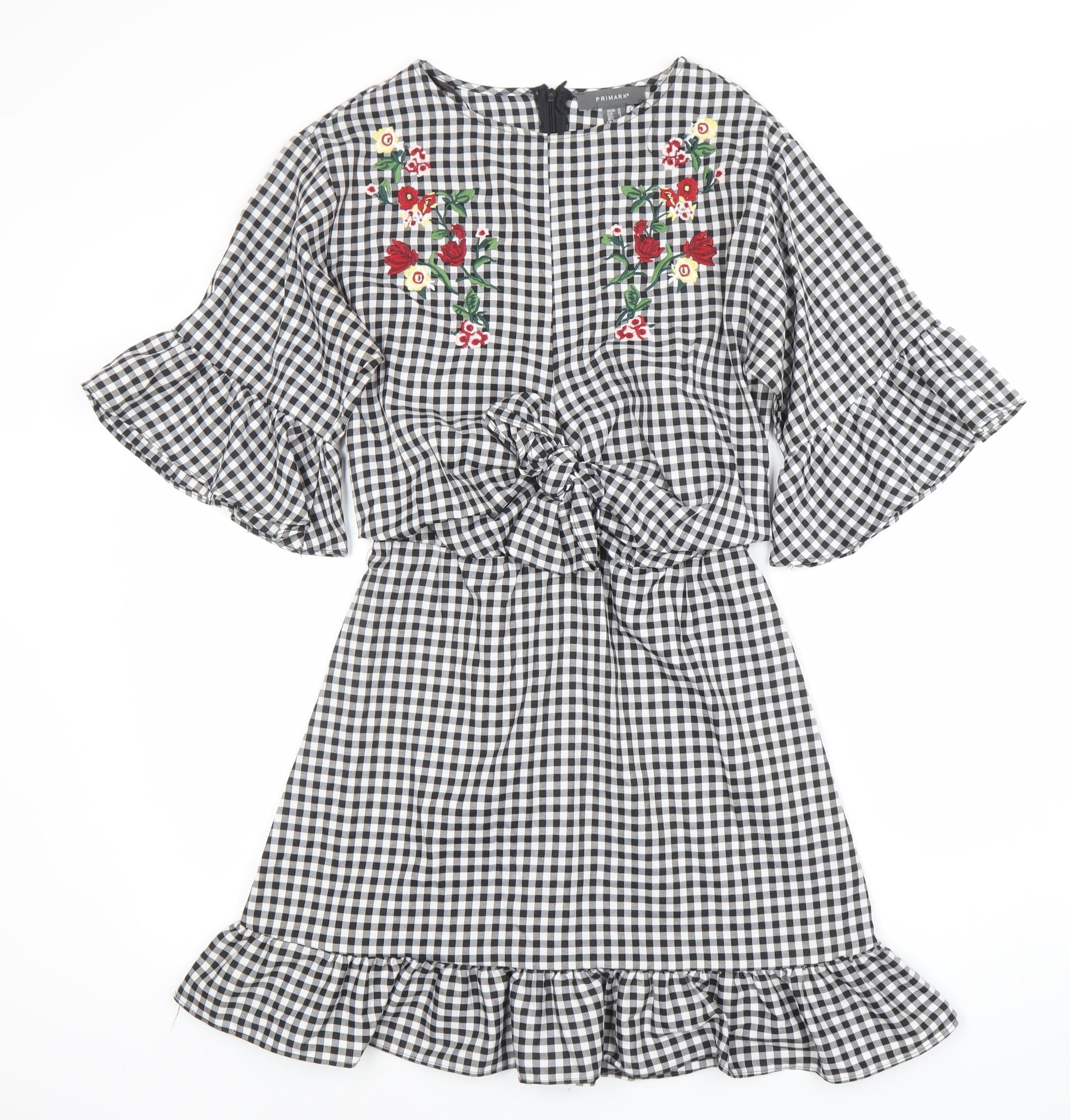 Primark Women’s Black Gingham Embroidered Short Shift Dress Size 10