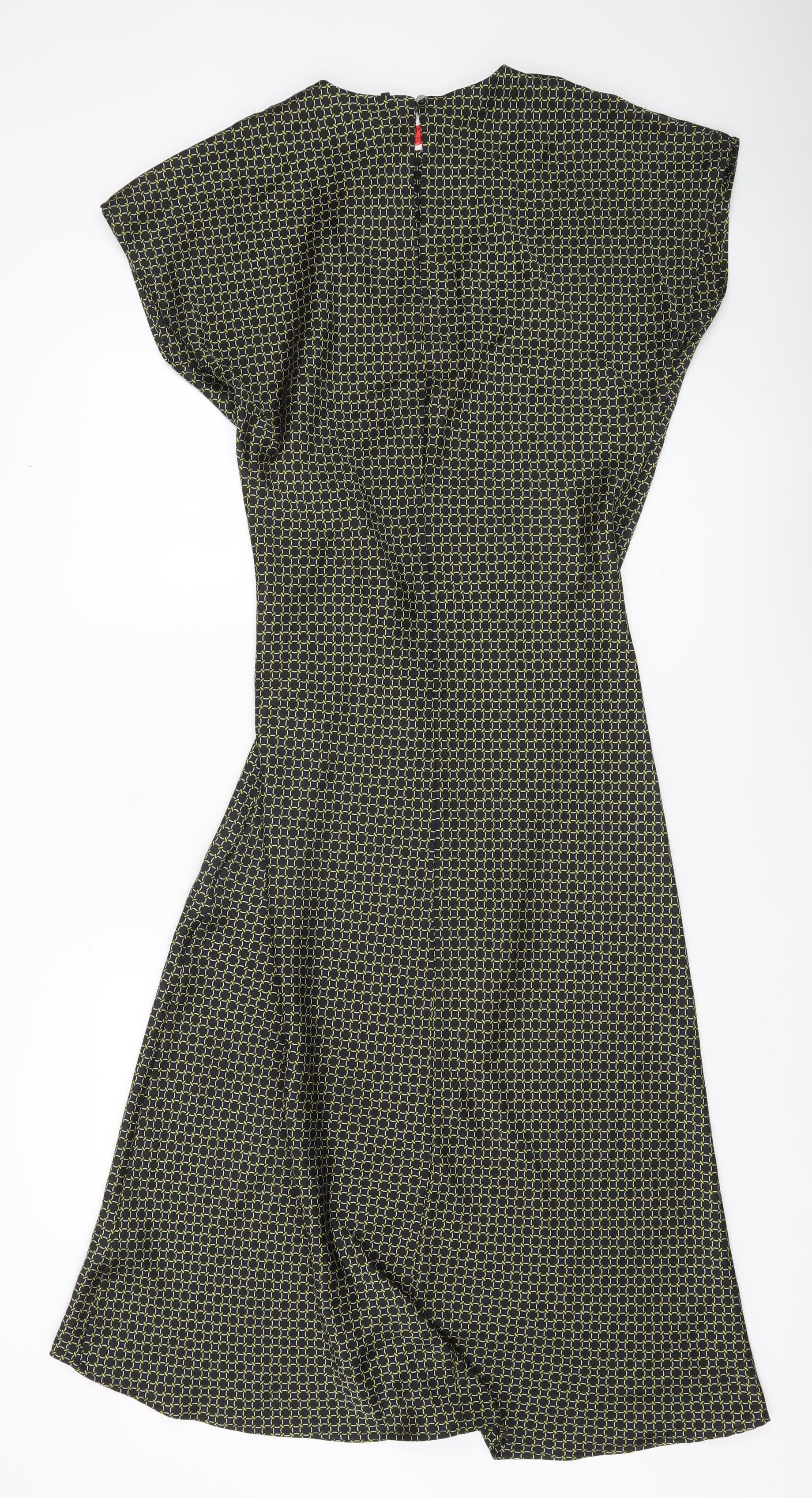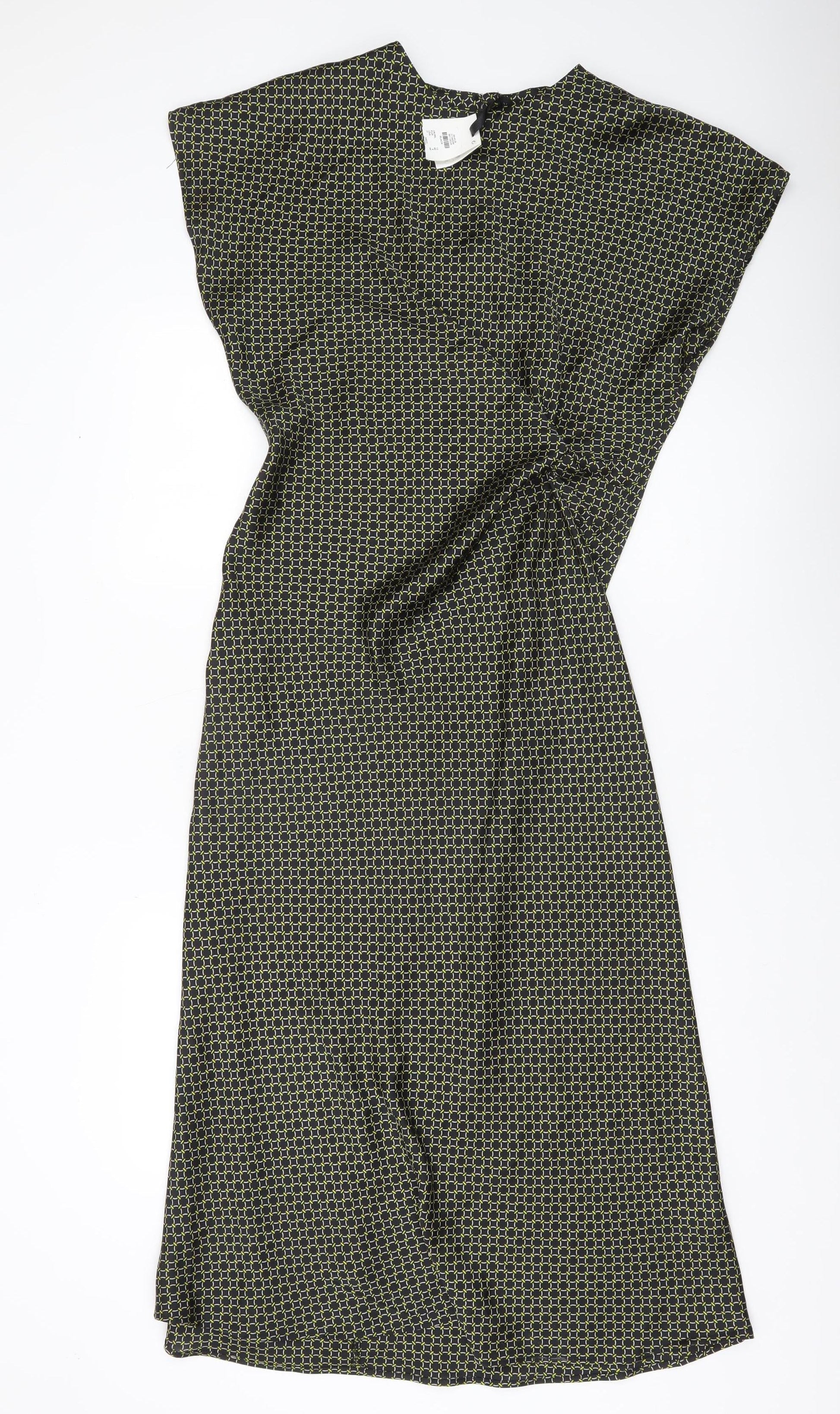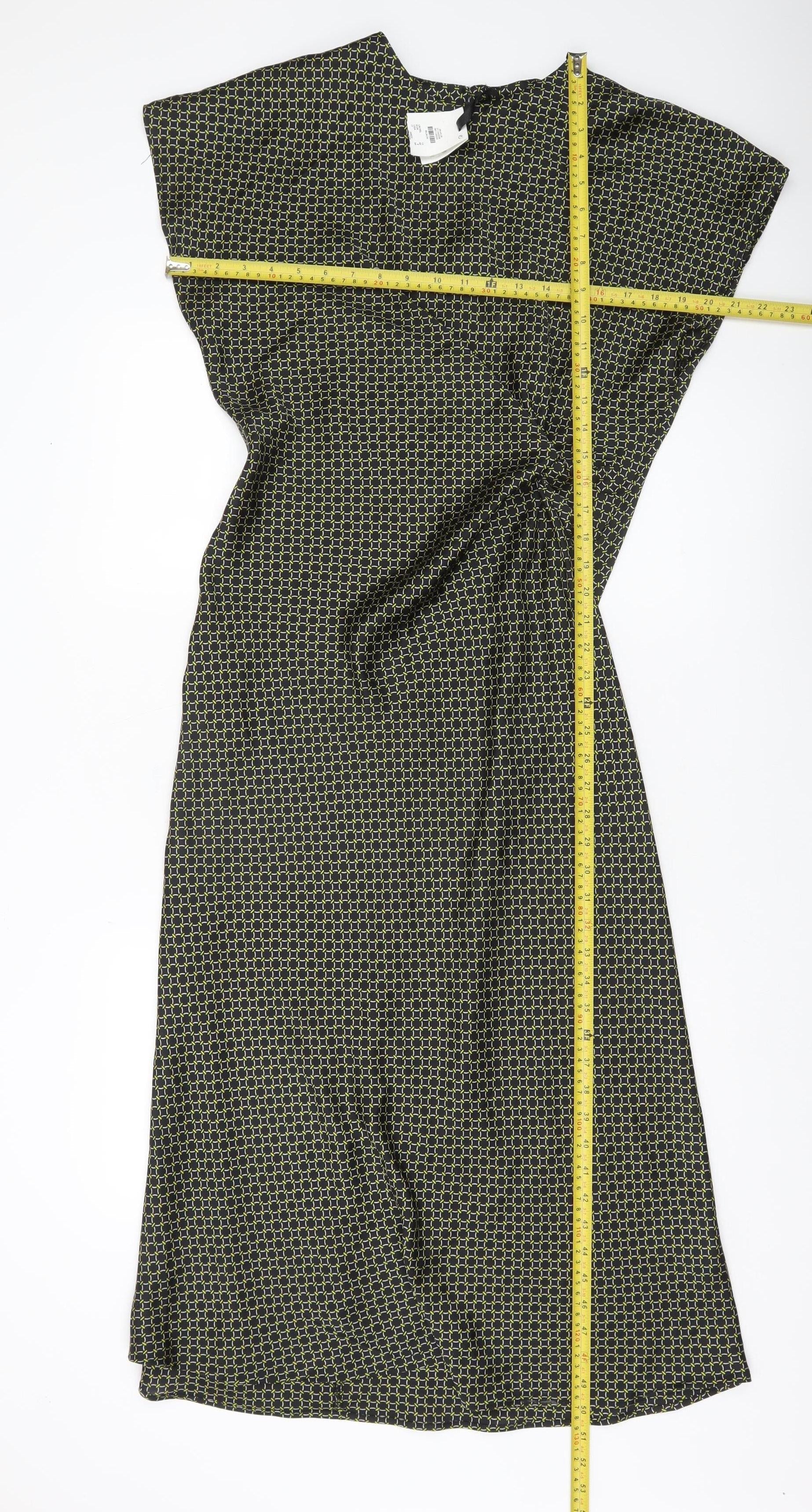 Primark Women’s Black Green Geometric Midi Shift Dress Size 12