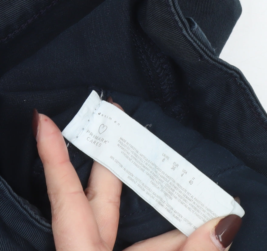 Primark Women’s Blue Chino Trousers Size 8 Regular Fit Twill Cotton