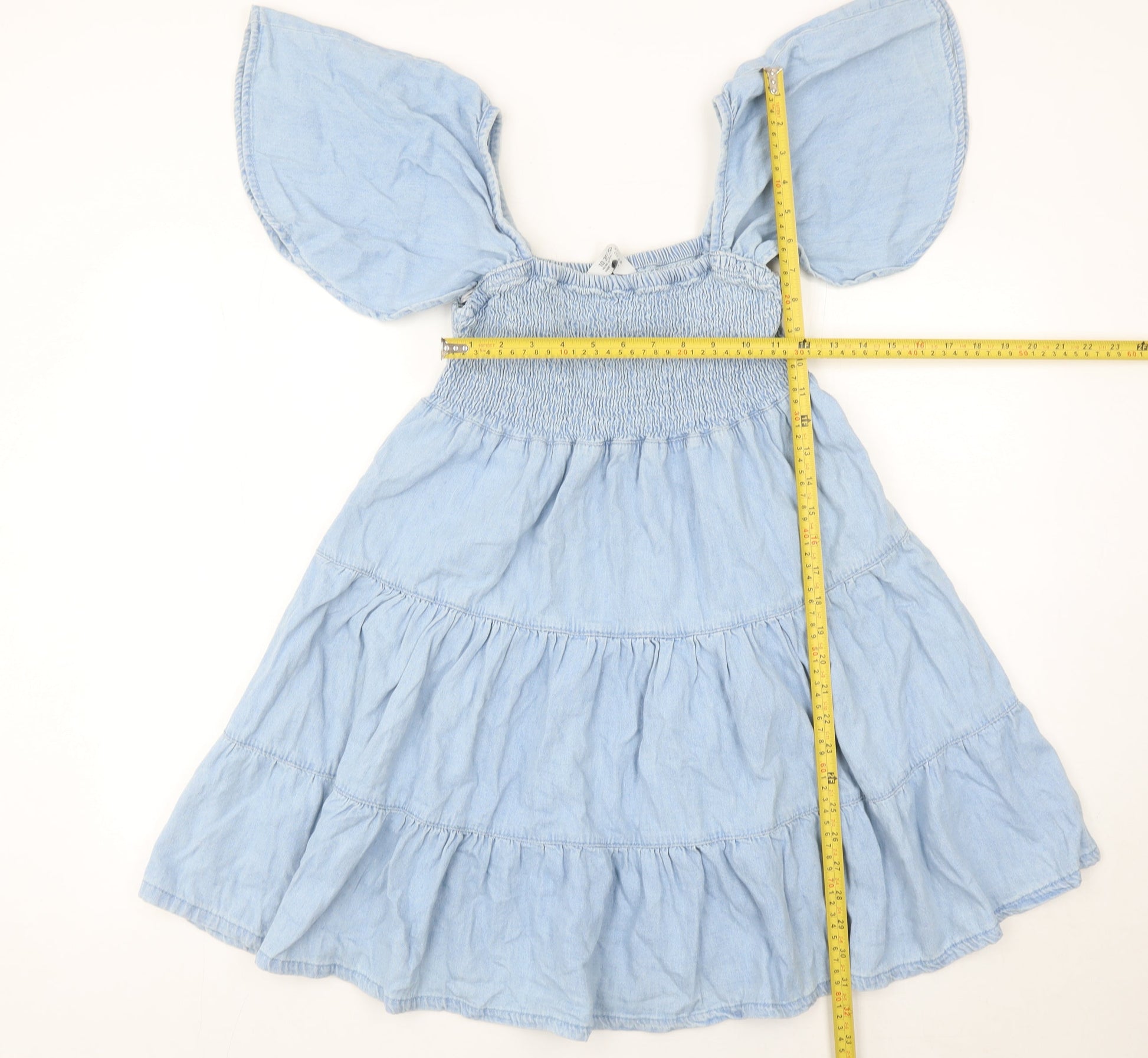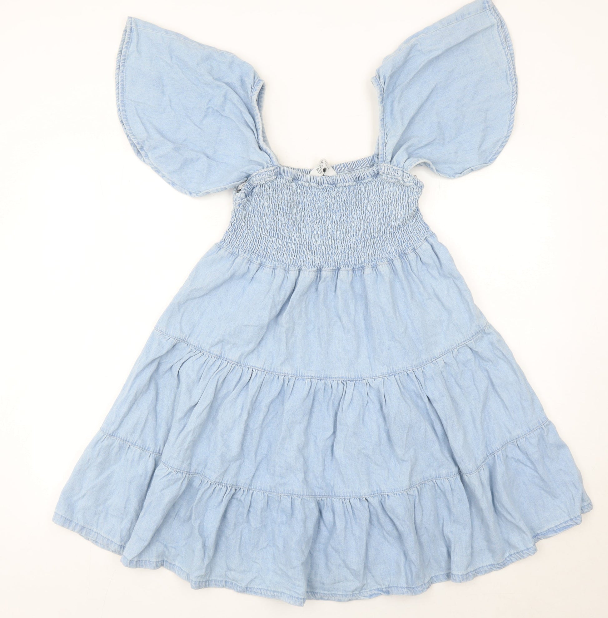 Primark Women’s Blue Cotton Skater Dress Size 10 Flutter Sleeve