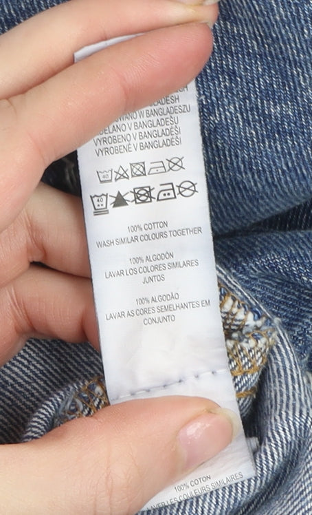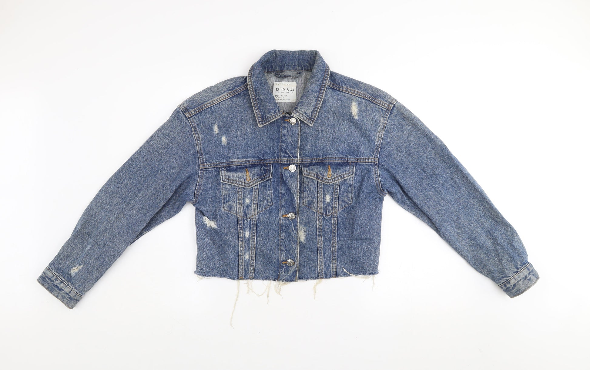 Primark Women’s Blue Cropped Denim Jacket Size 12 Distressed Style