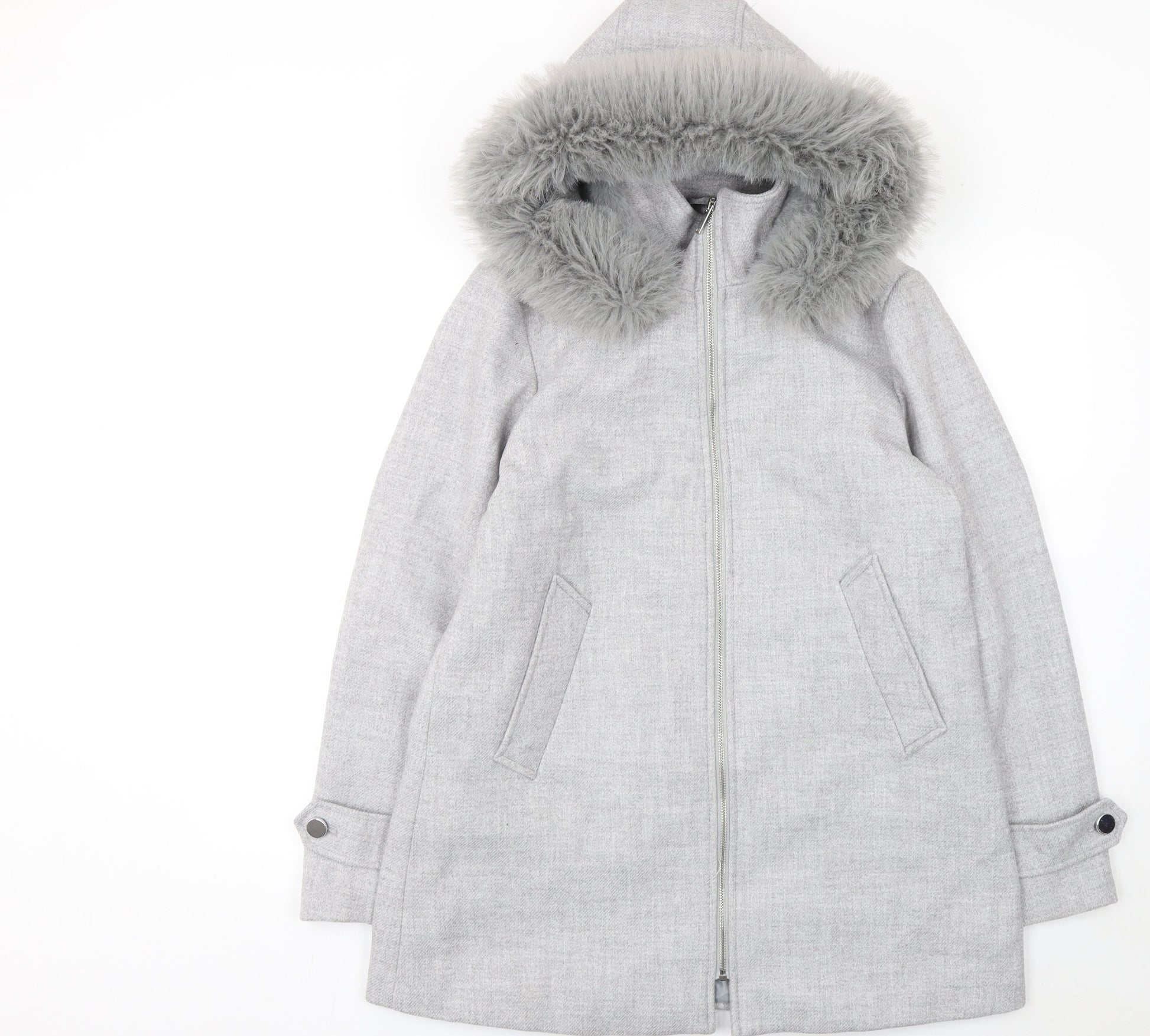 Primark Women’s Grey Parka Coat Size 12 Hooded Faux Fur Trim Winter