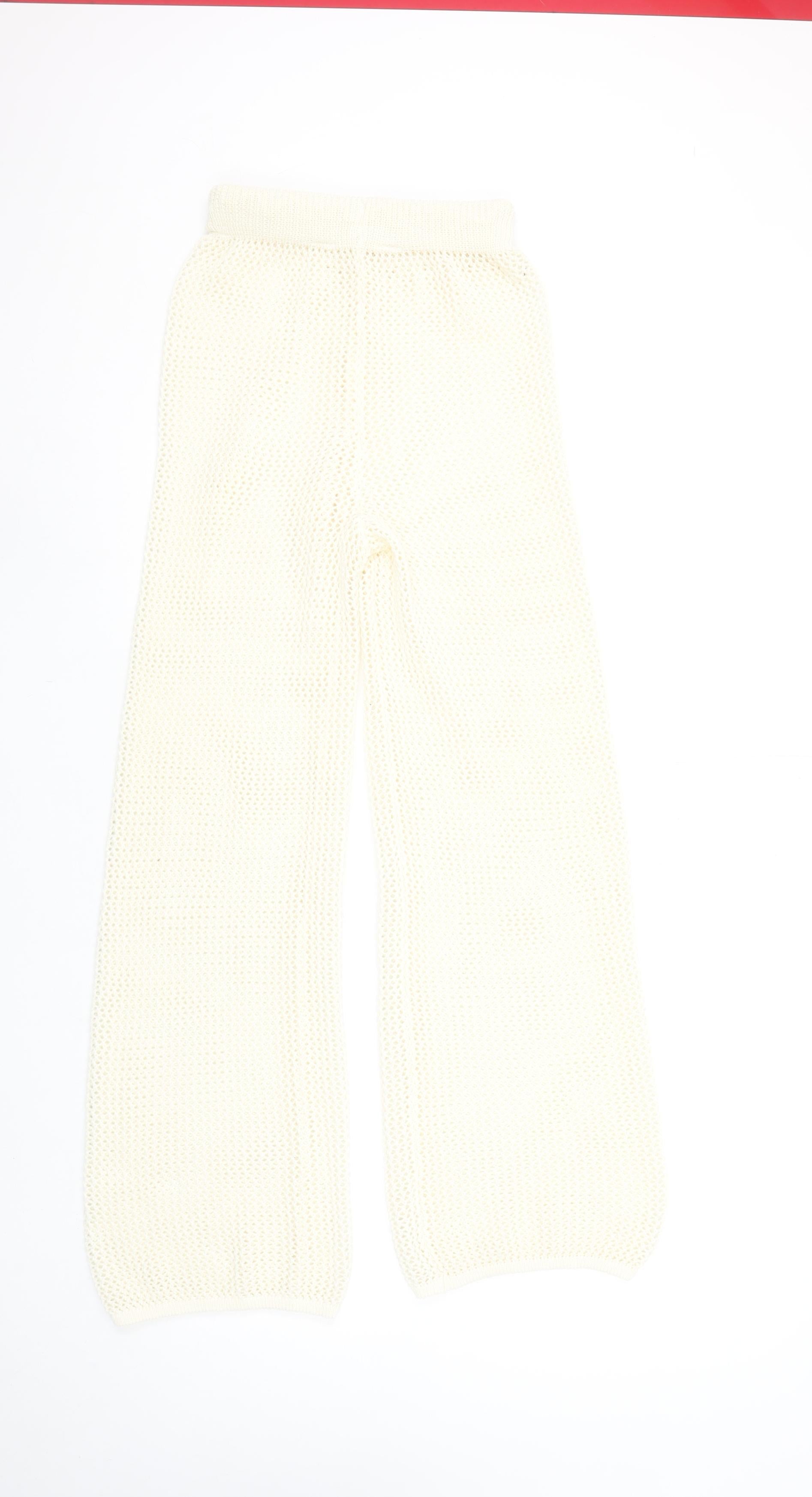 Primark Women’s Ivory Cotton Knit Wide-Leg Drawstring Trousers XS