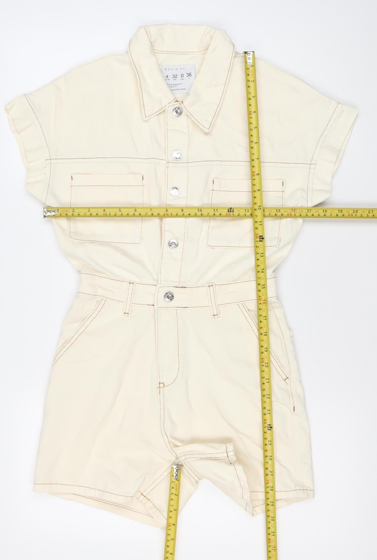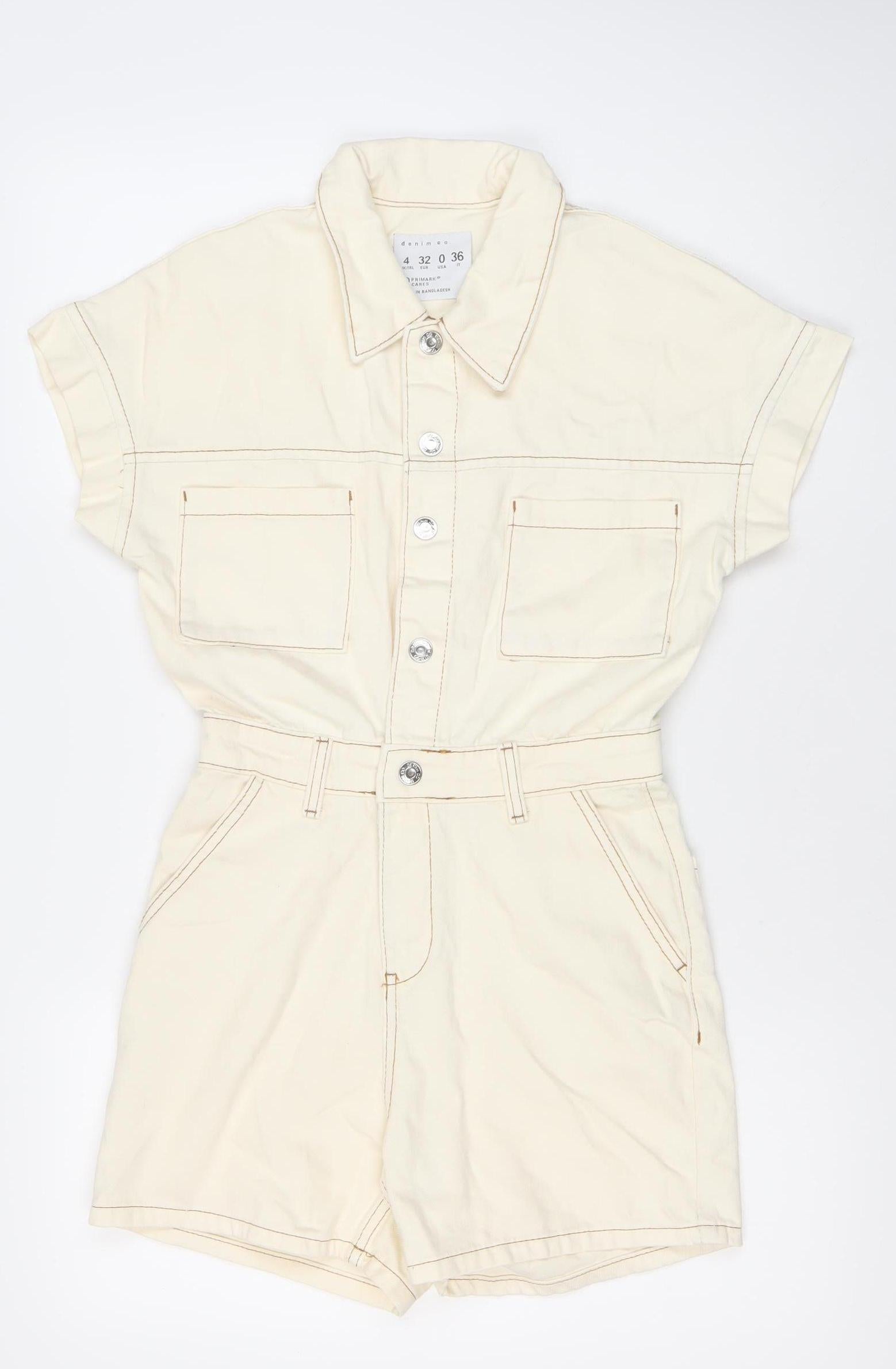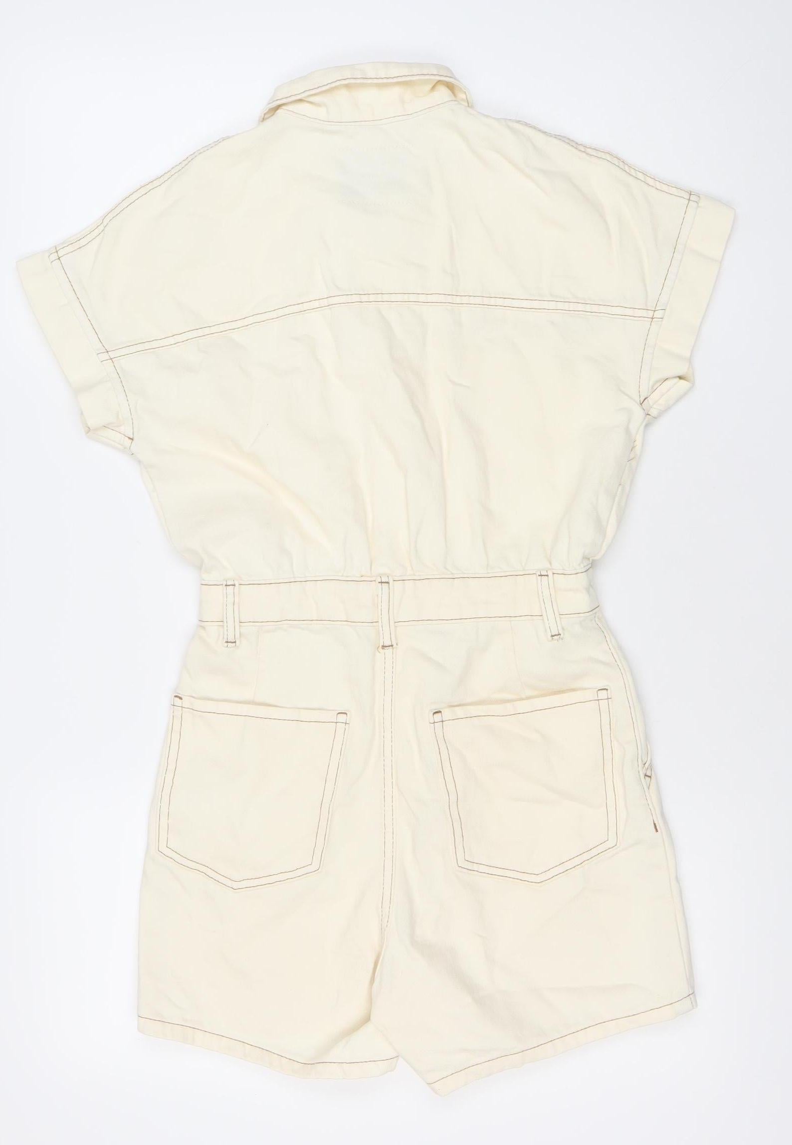 Primark Women’s Ivory Cotton Playsuit Size 4 Short Sleeve Collared