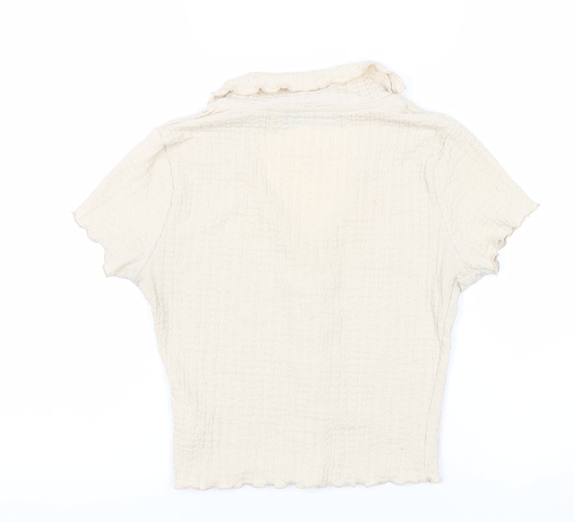 Primark Women’s Ivory XS Cropped Button-Up Short Sleeve Top