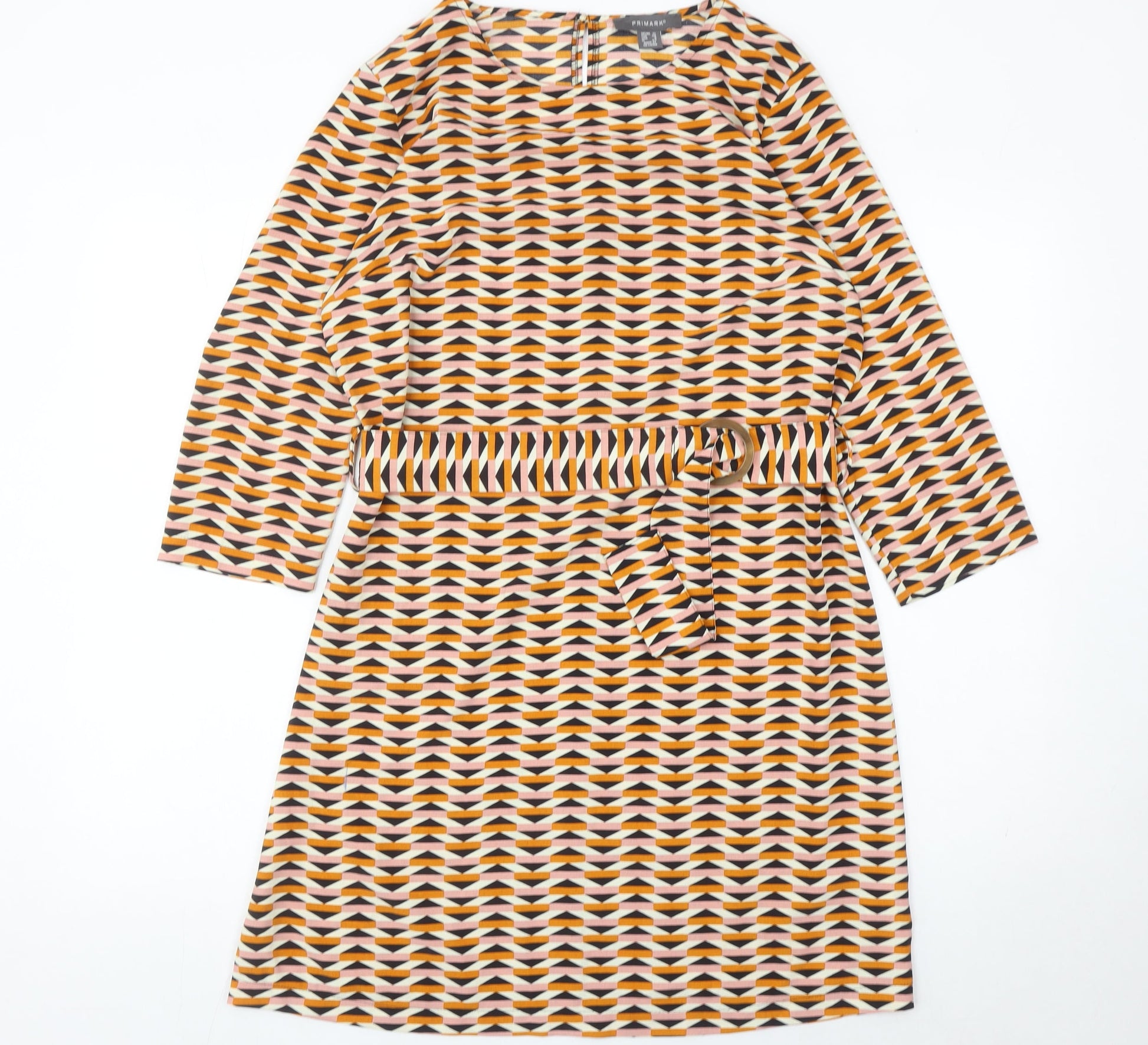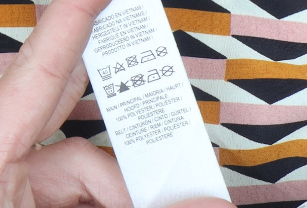 Primark Women’s Multicoloured Geometric A-Line Belted Dress Size 12