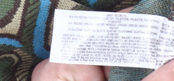- Material Breakdown: 66% Polyester 32% Viscose 2% Elastane