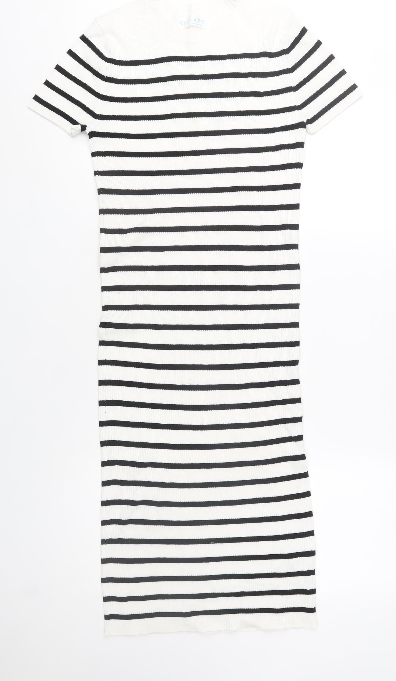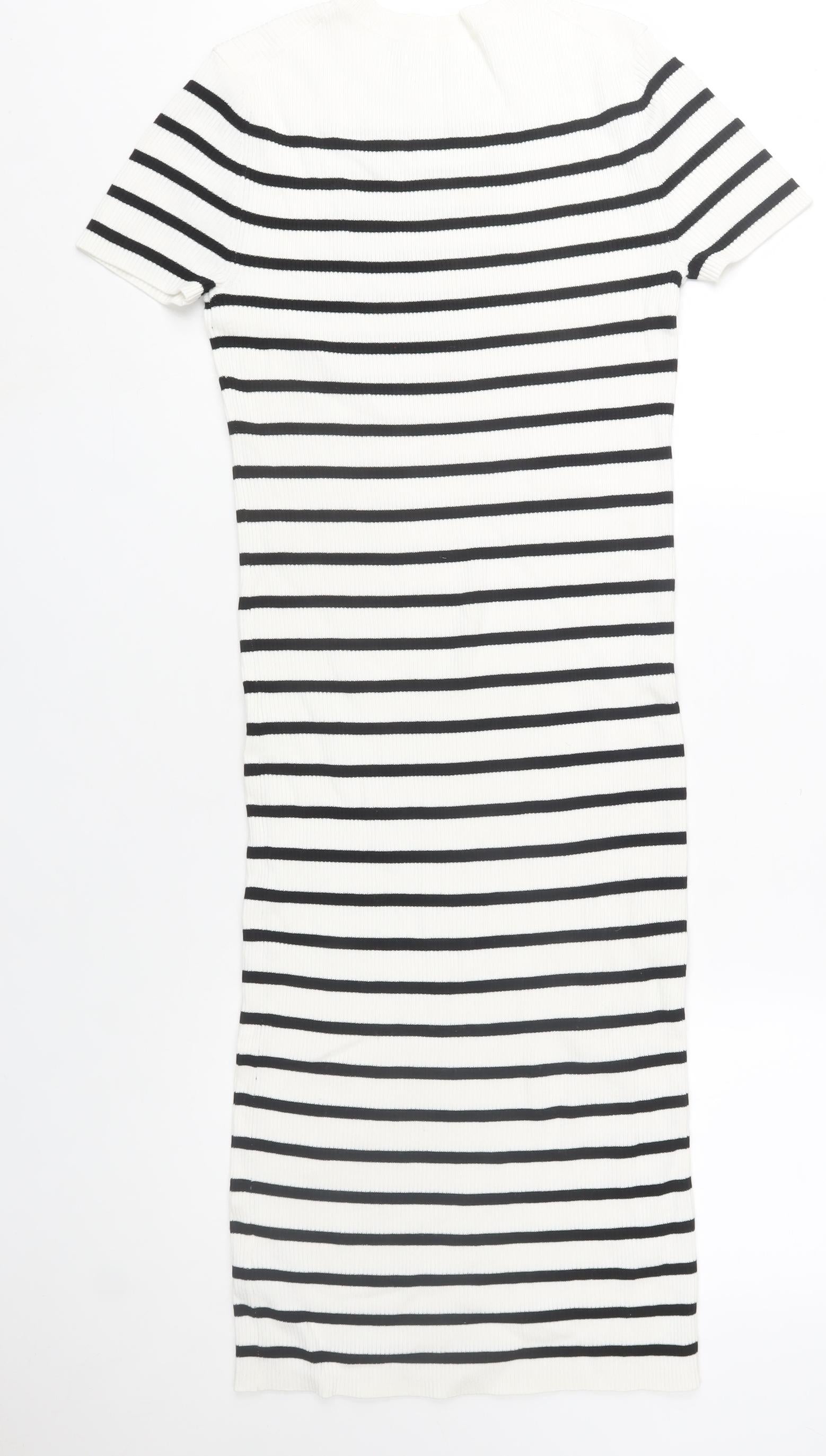 Primark Women’s White Black Striped Bodycon Knit Midi Dress M