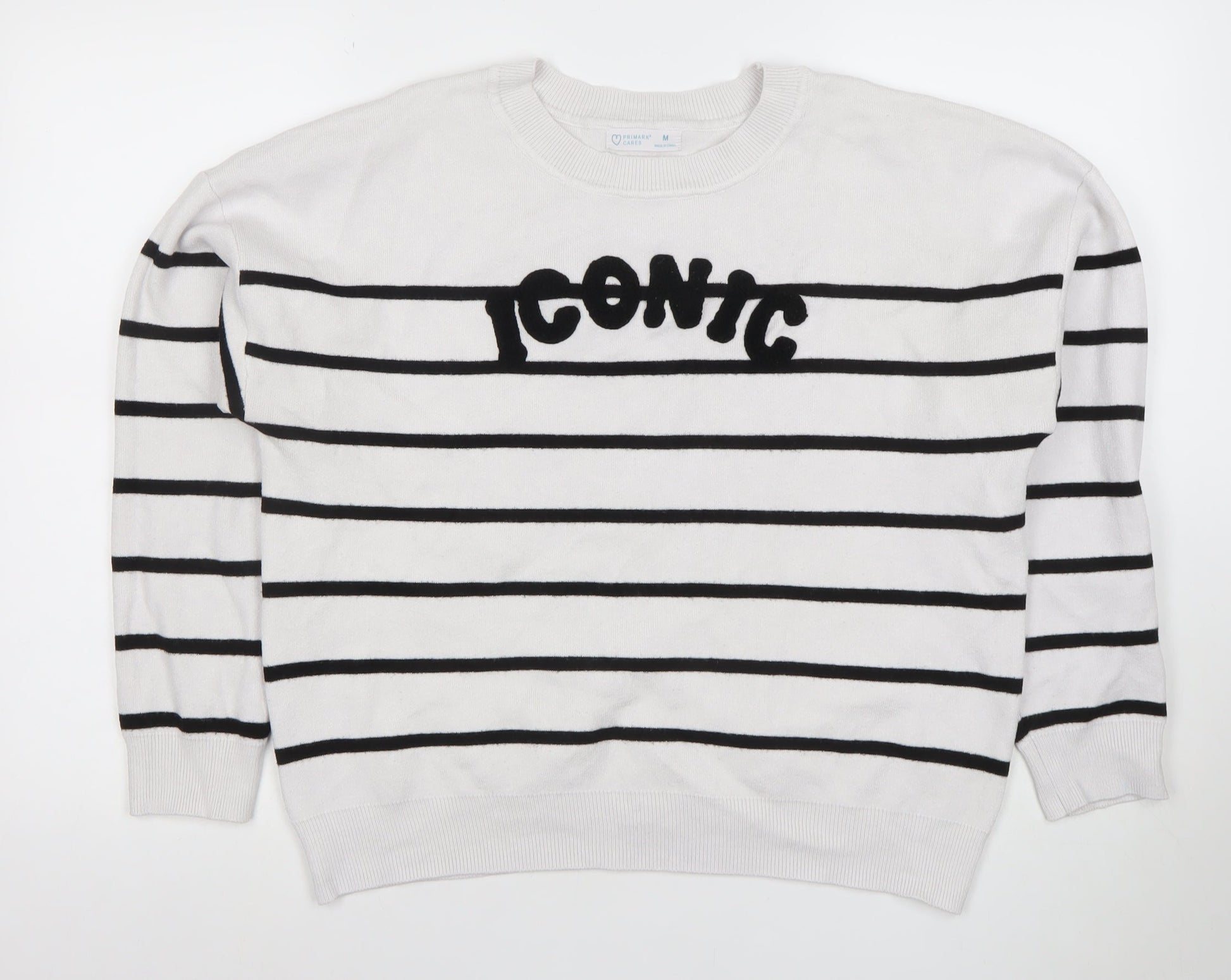 Primark Women White Striped Iconic Pullover Jumper Size M