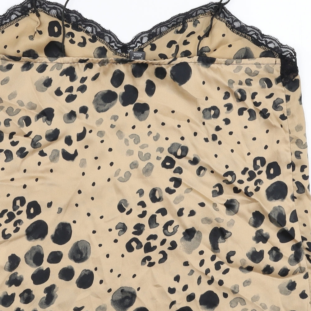 Primark Womens Beige Animal Print Polyester Camisole Blouse Size 14 V-Neck