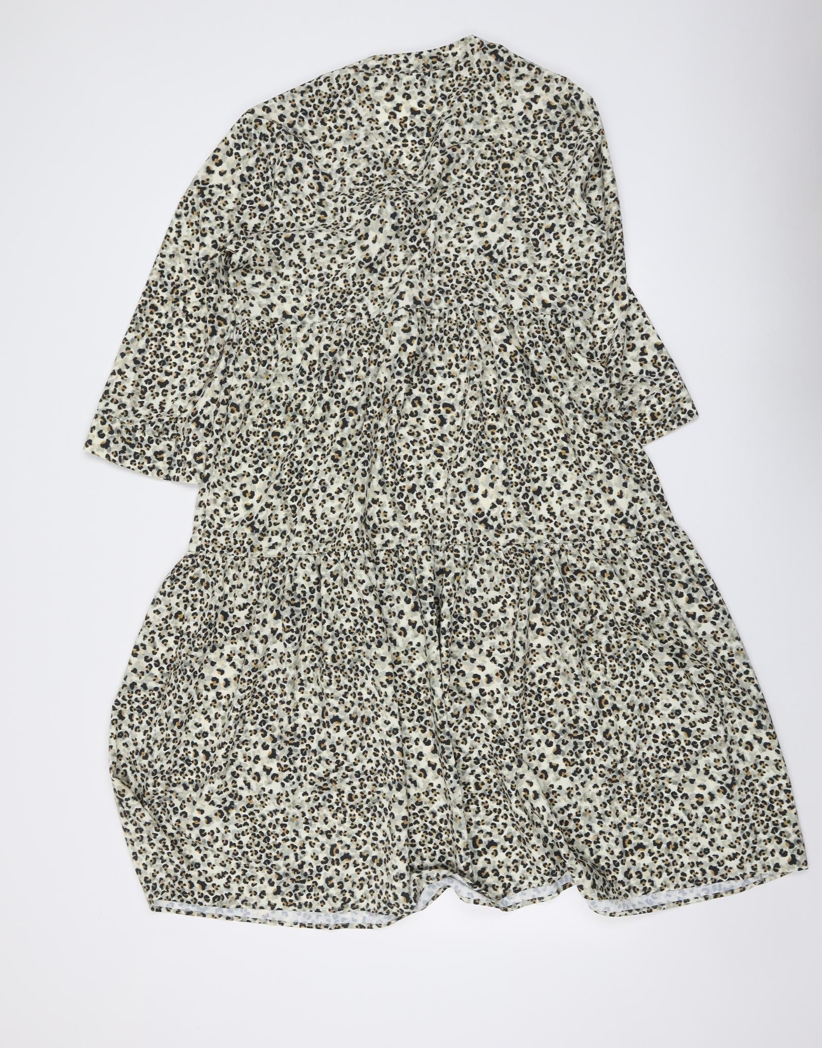 Primark Womens Beige Animal Print Polyester Skater Dress Size 10 V-Neck