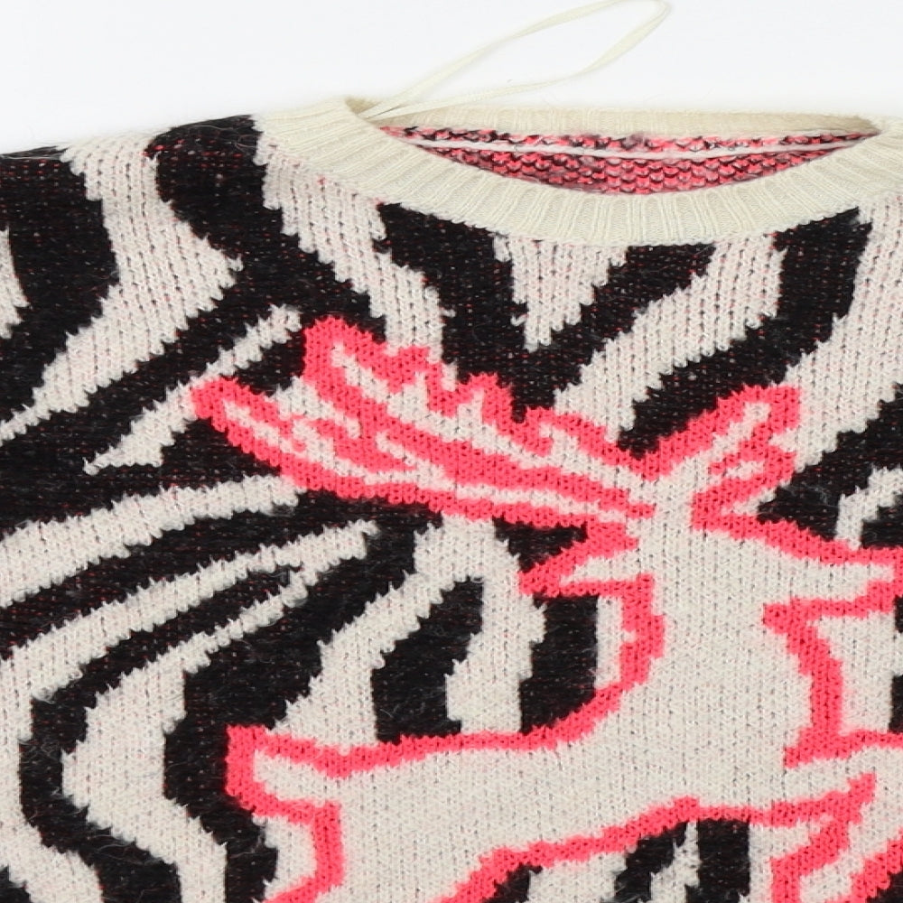Primark Womens Beige Animal Print Pullover Jumper Size 2XS