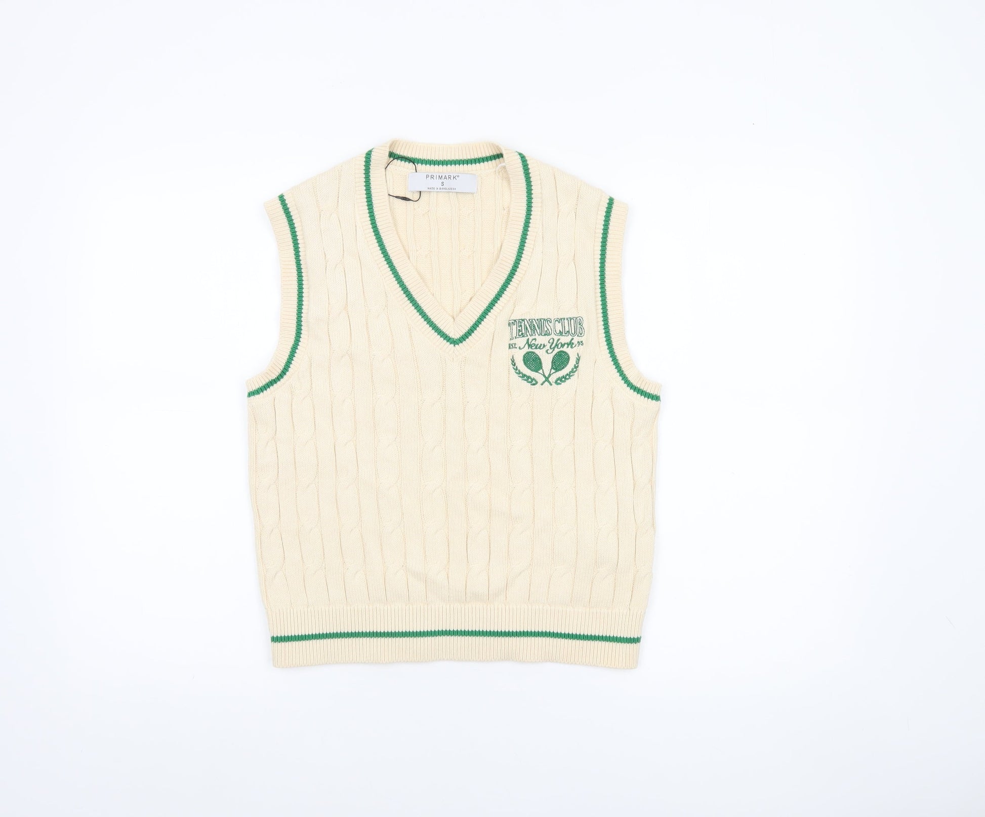 Primark Women's Beige Cable Knit Tennis Club V-Neck Vest S