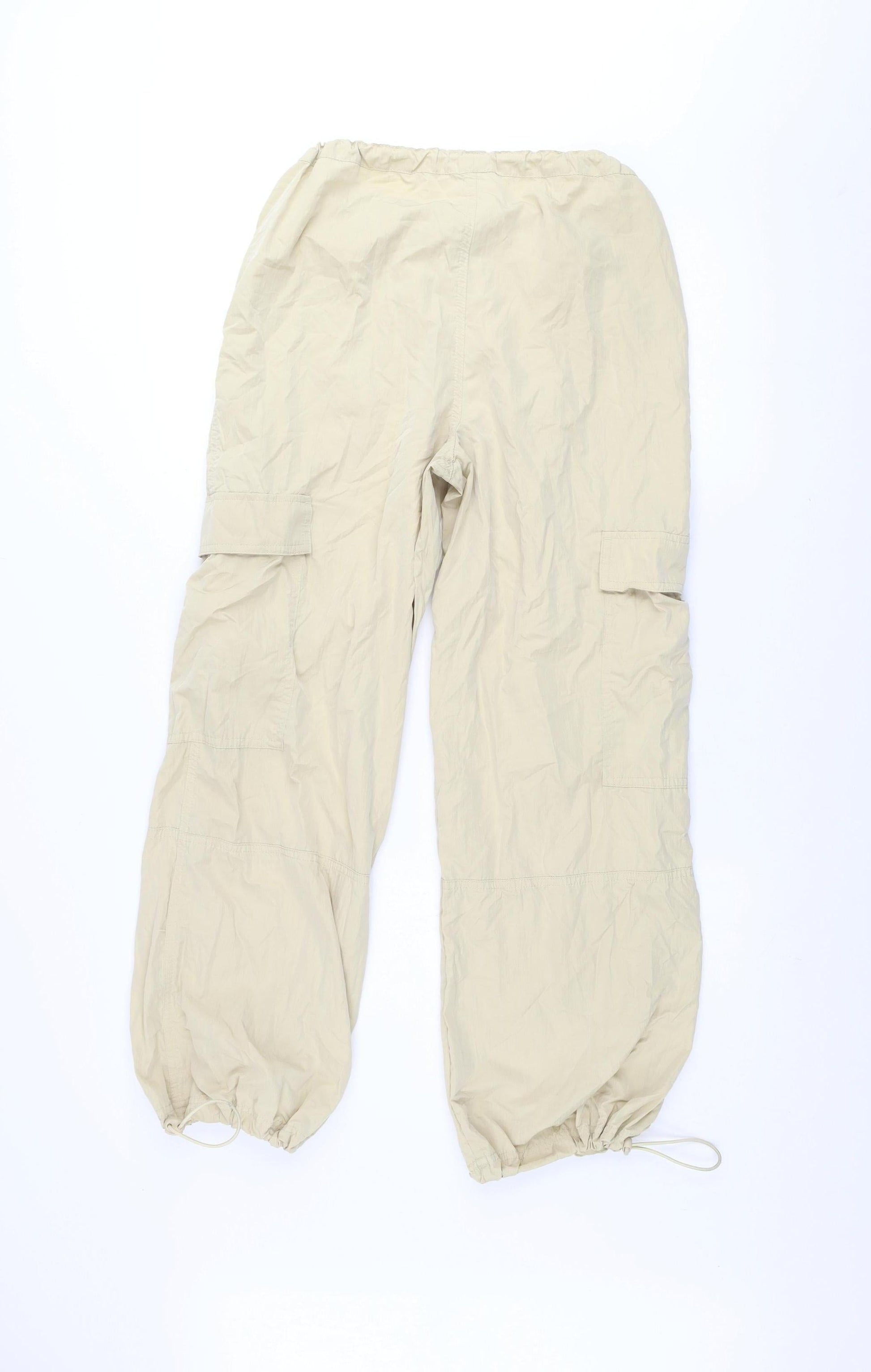 Primark Womens Beige Cargo Trousers Size 10 Elastic Waist Lightweight