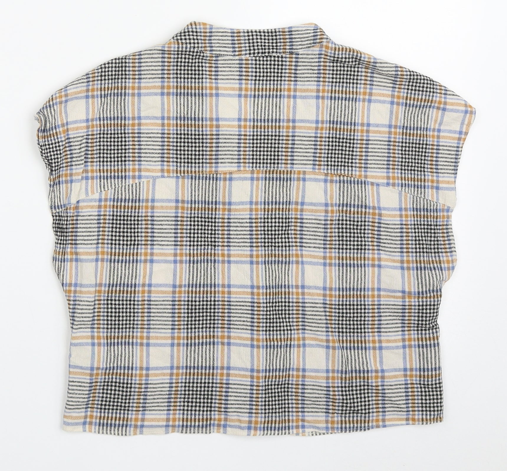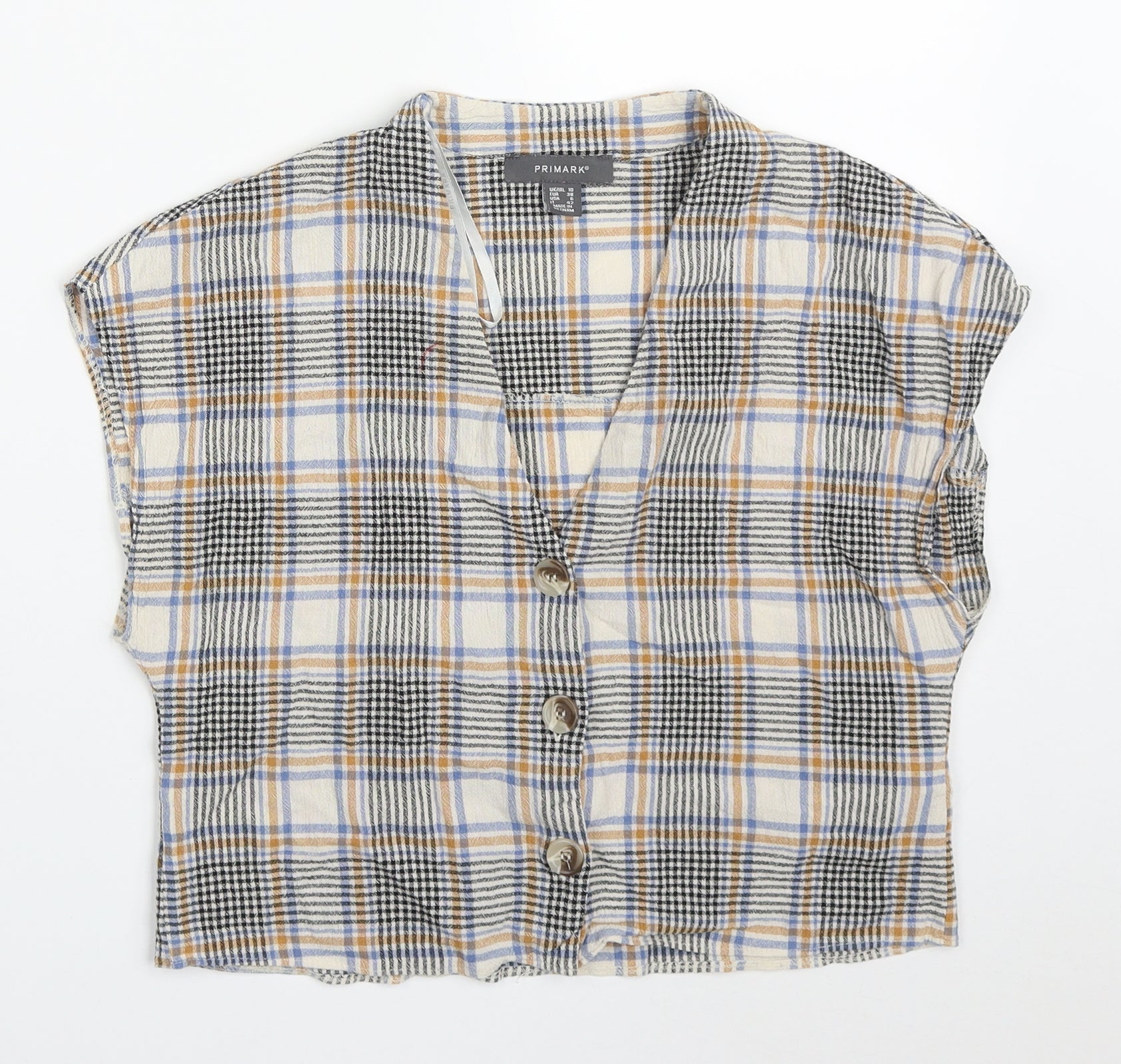 Primark Womens Beige Check Cotton Basic Button-Up Size 10 V-Neck