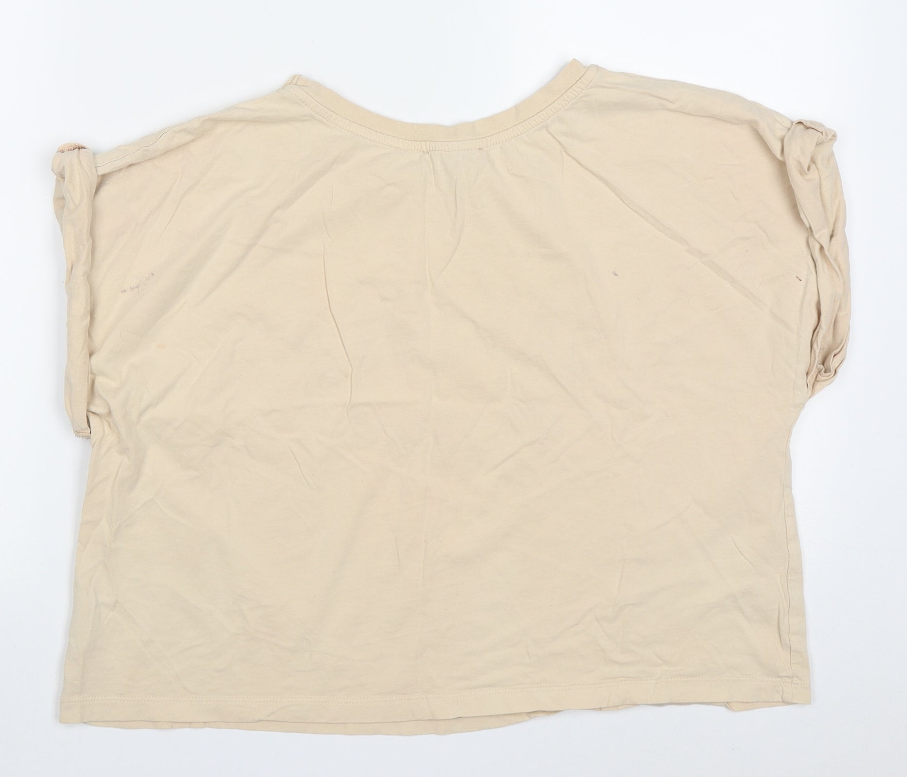 Primark Womens Beige Cotton Cropped T-Shirt Size M Crew Neck - Say less do more