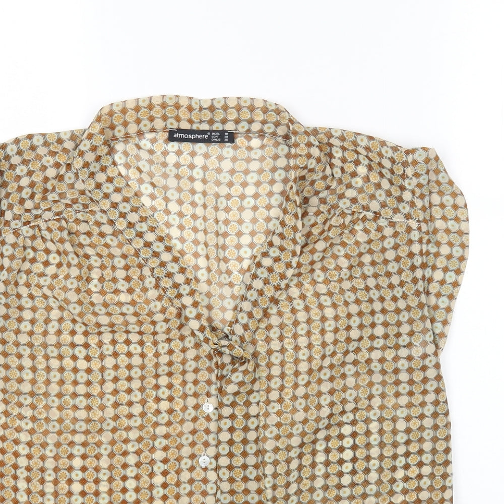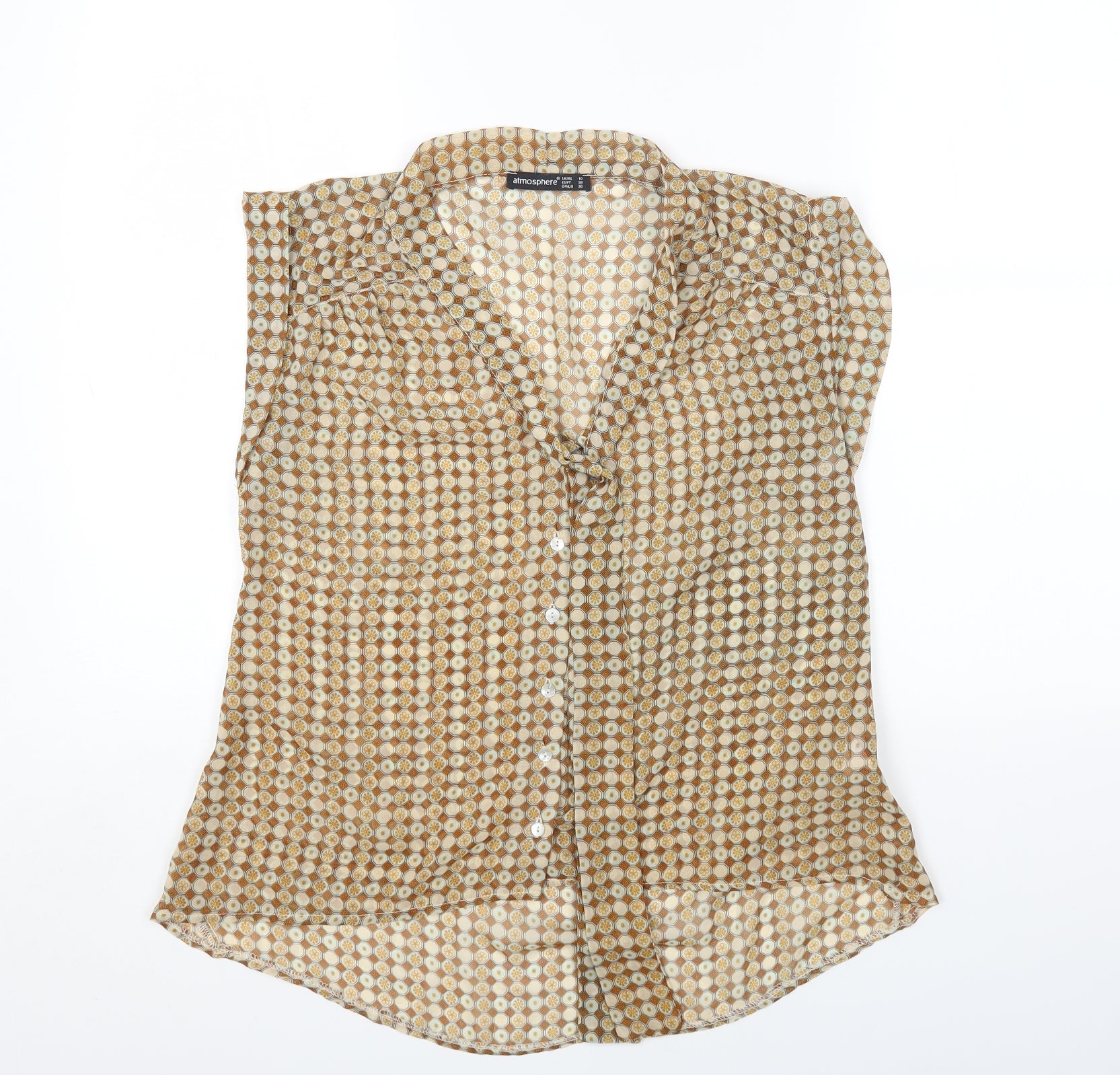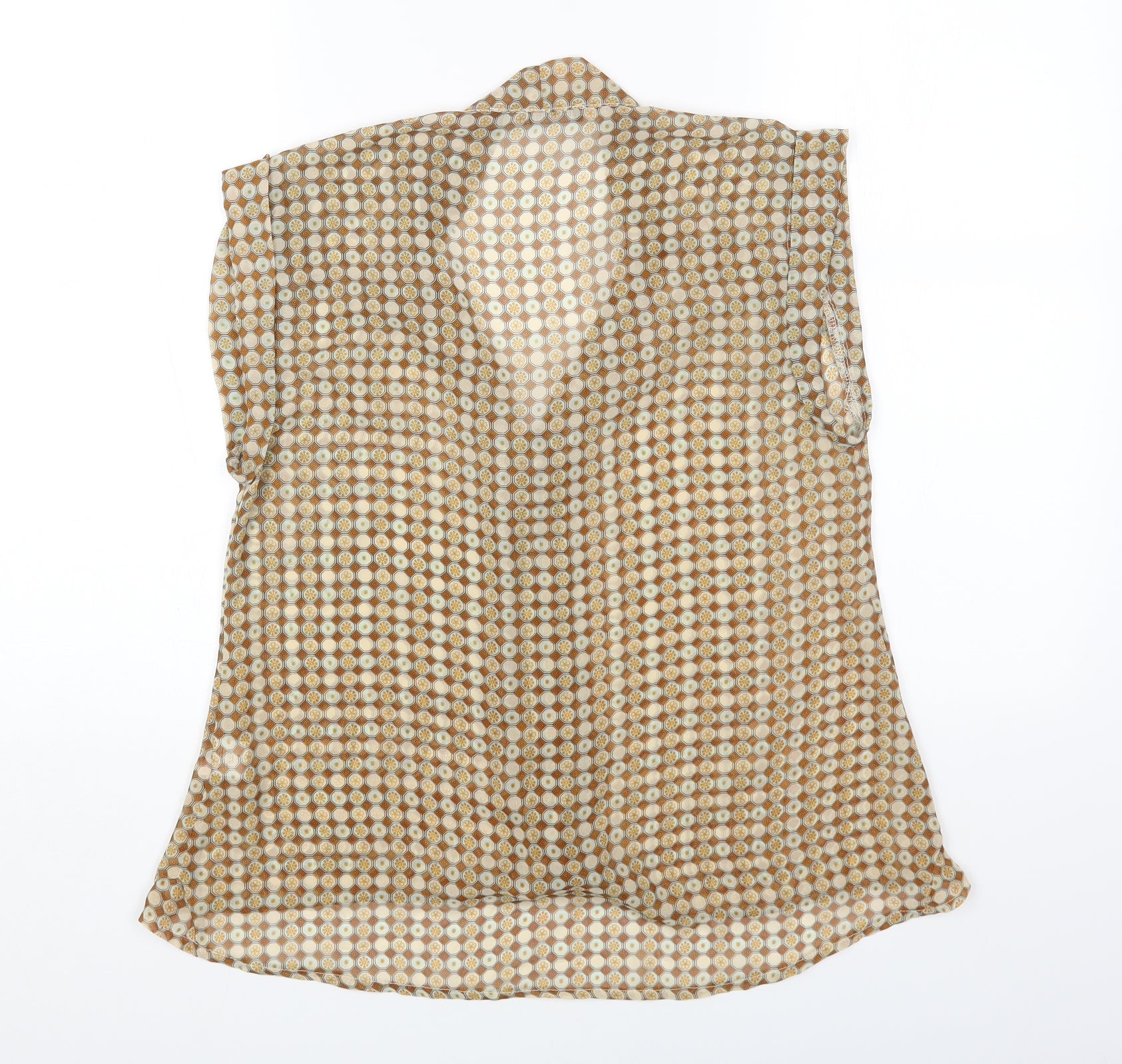 Primark Womens Beige Geometric Polyester Basic Blouse Size 10 Round Neck