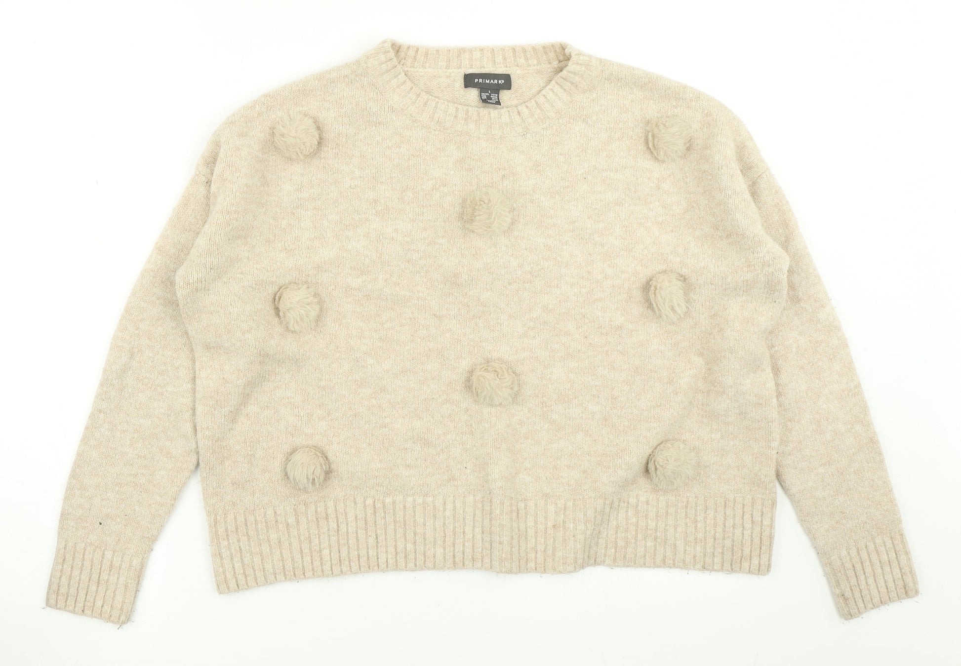 Primark Womens Beige Polka Dot Knit Pullover Jumper Size L