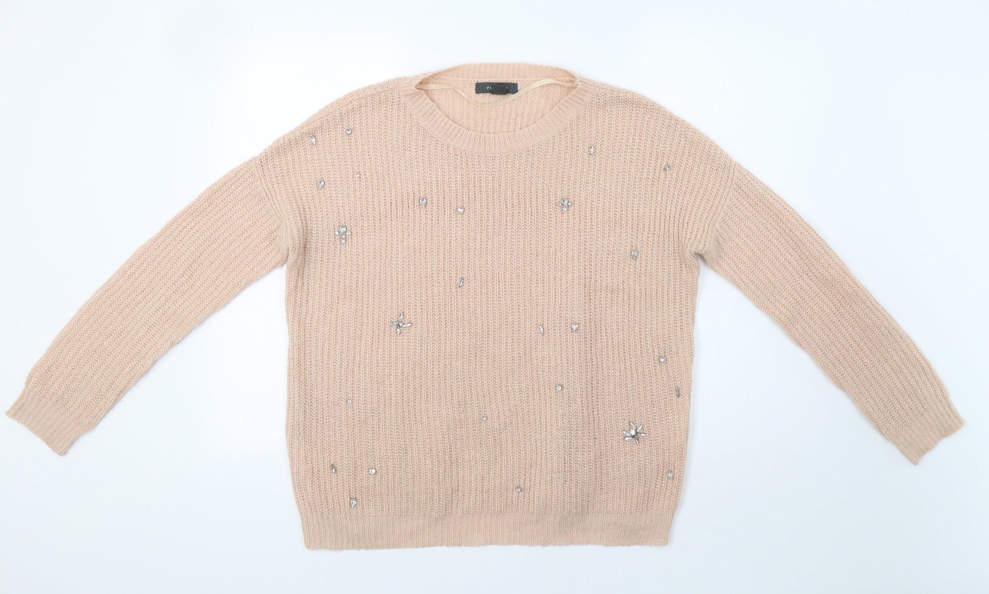 Primark Womens Beige Pullover Jumper Size M - Embellished