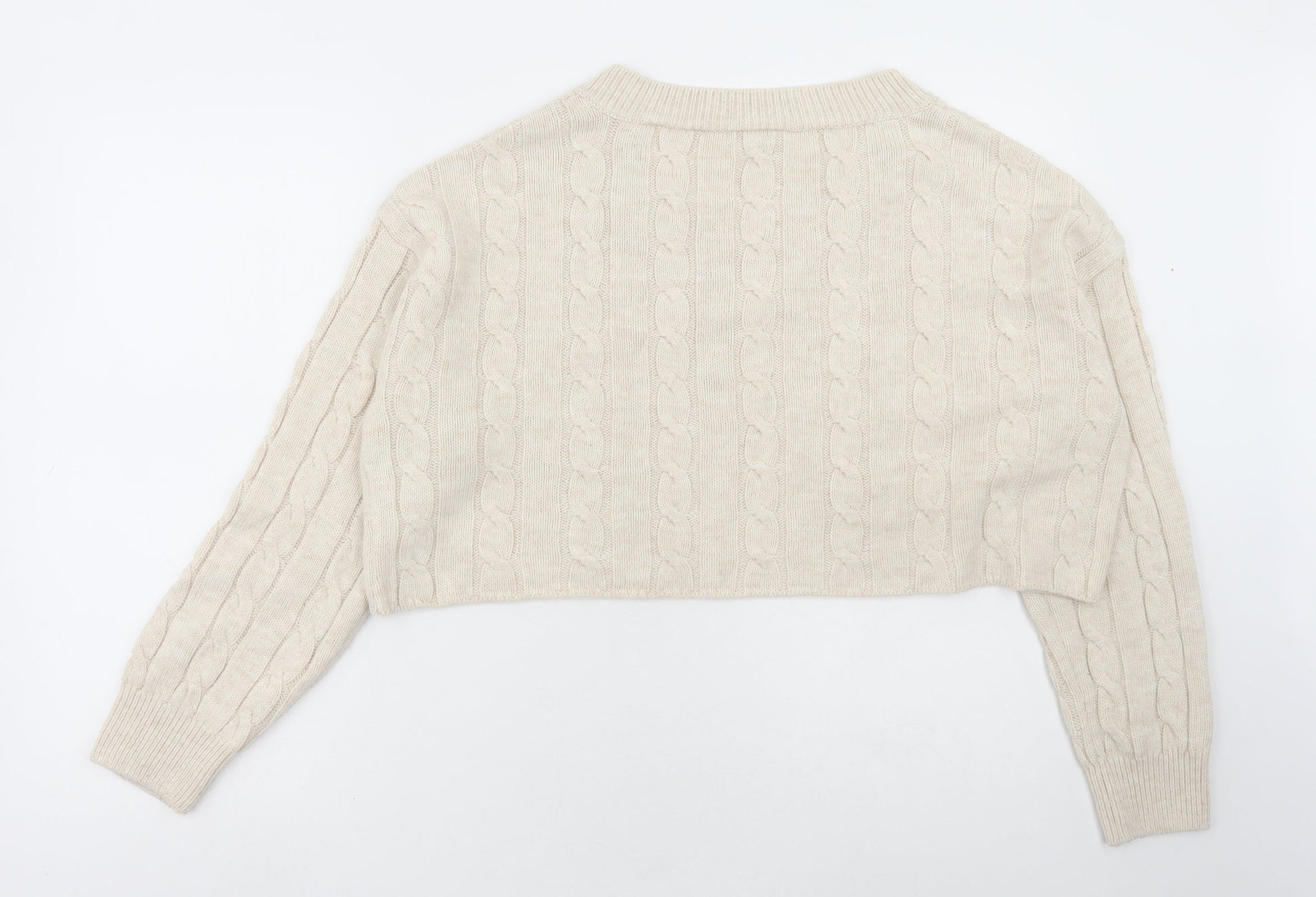 Primark Womens Beige V-Neck Acrylic Pullover Jumper Size M