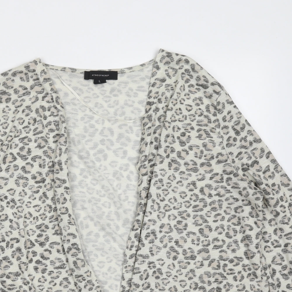 Primark Womens Beige V-Neck Animal Print Polyester Cardigan Jumper Size L