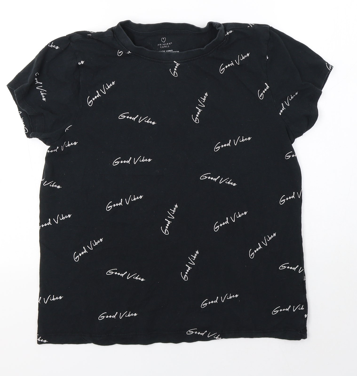 Primark Womens Black 100% Cotton Basic T-Shirt Size S Round Neck
