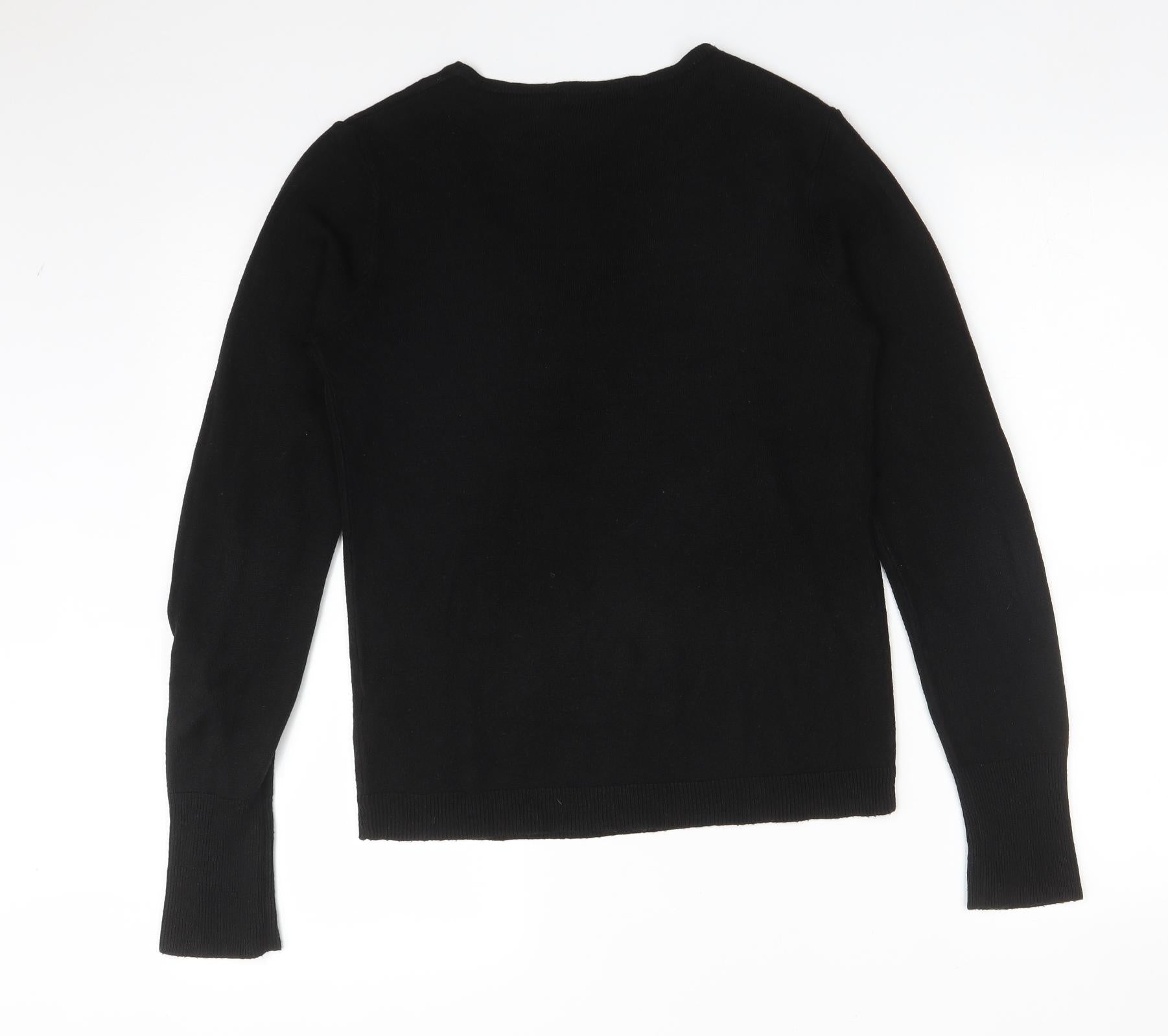 Primark Womens Black Acrylic Basic T-Shirt Size XS V-Neck