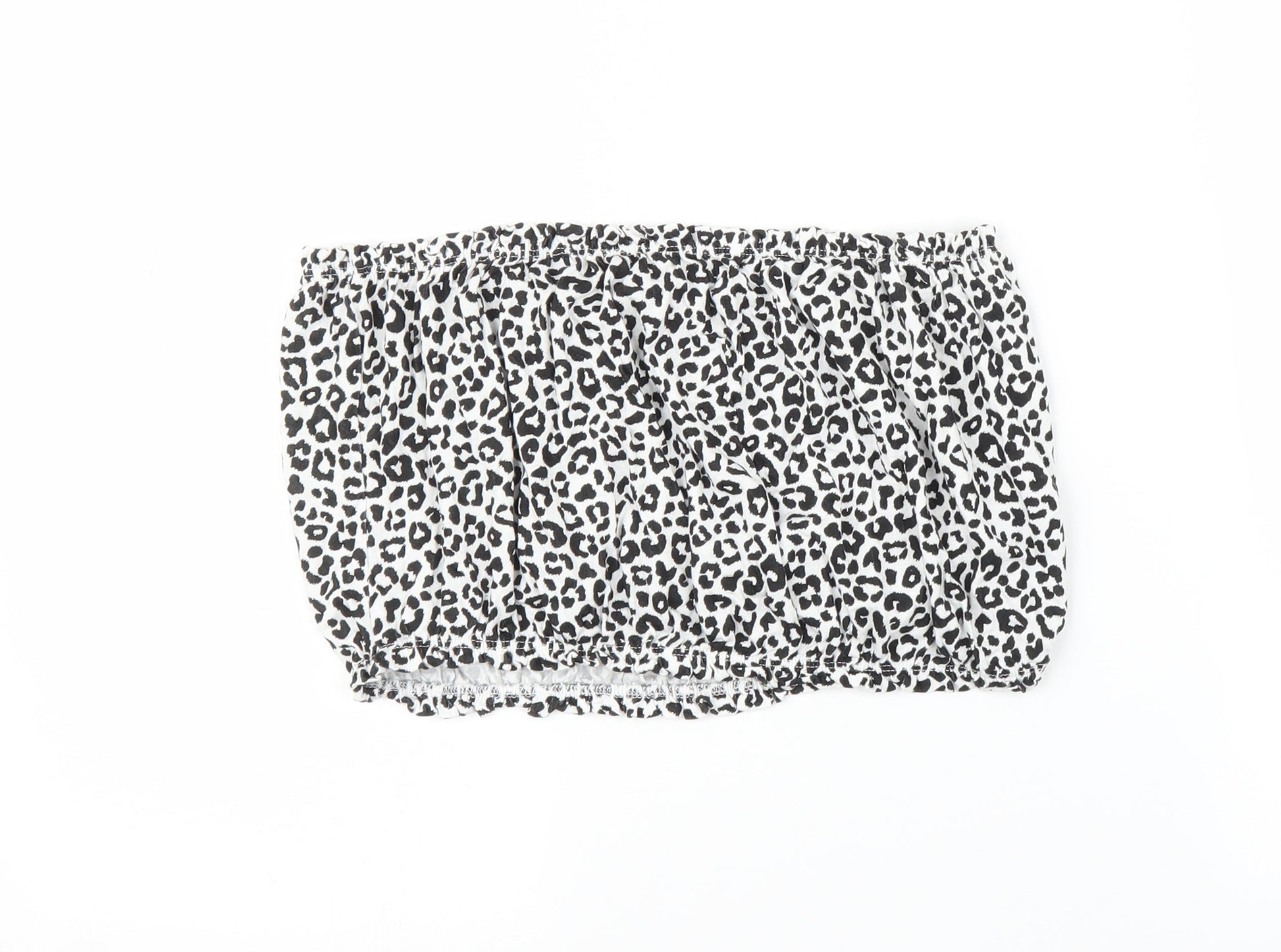 Primark Womens Black Animal Print Cropped Blouse Size L