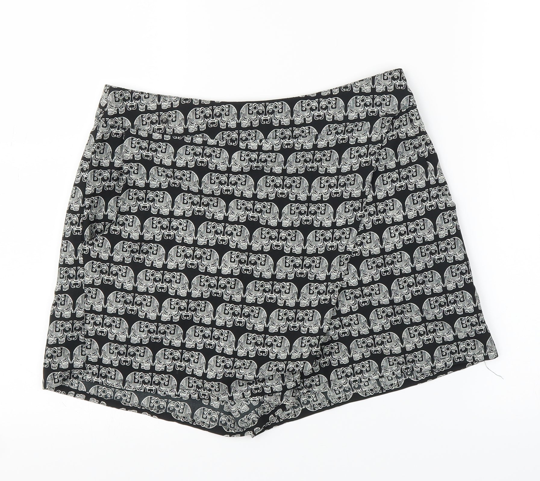 Primark Womens Black Animal Print Cut-Off Shorts Size 8