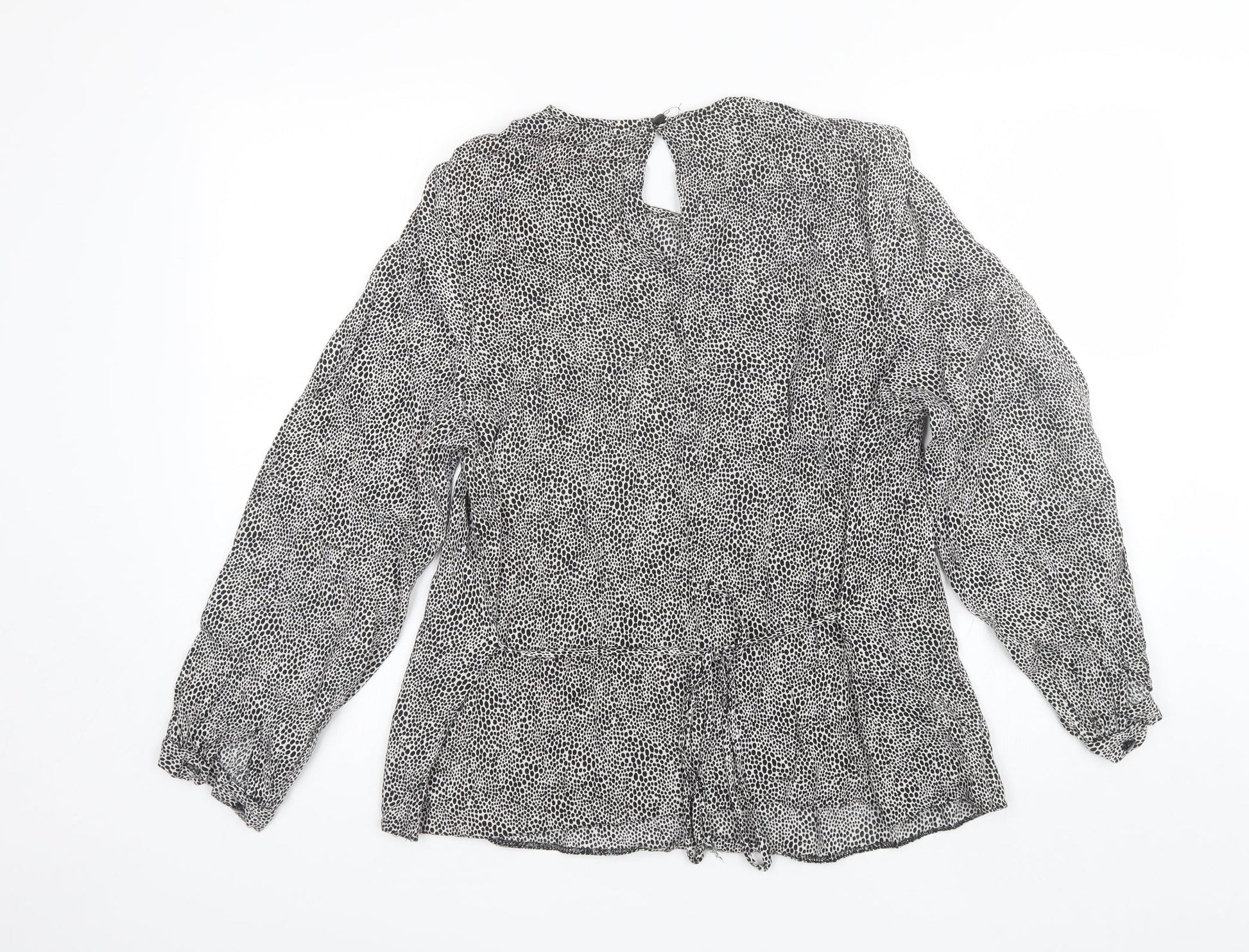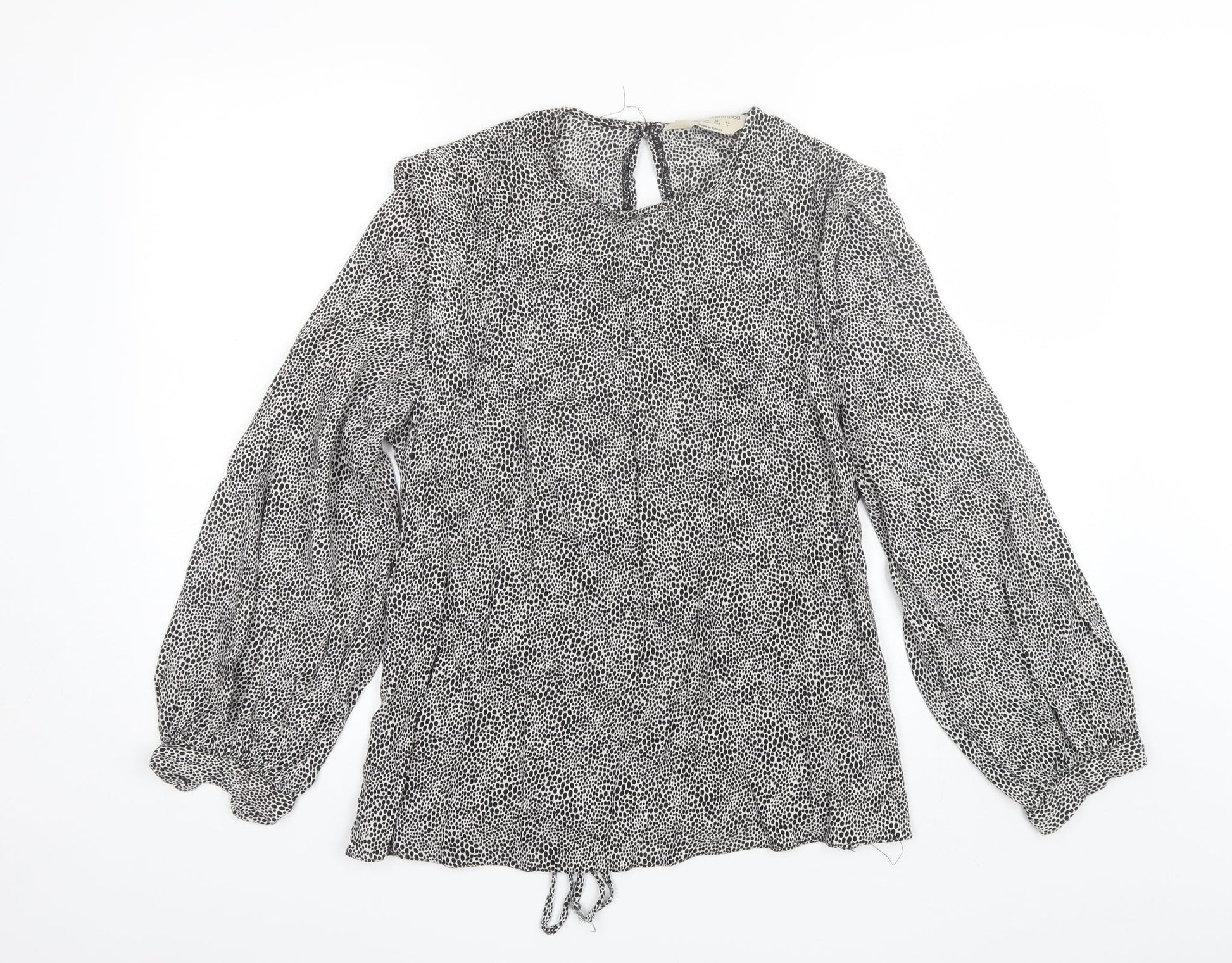 Primark Womens Black Animal Print Viscose Basic Blouse Size 10 Round Neck