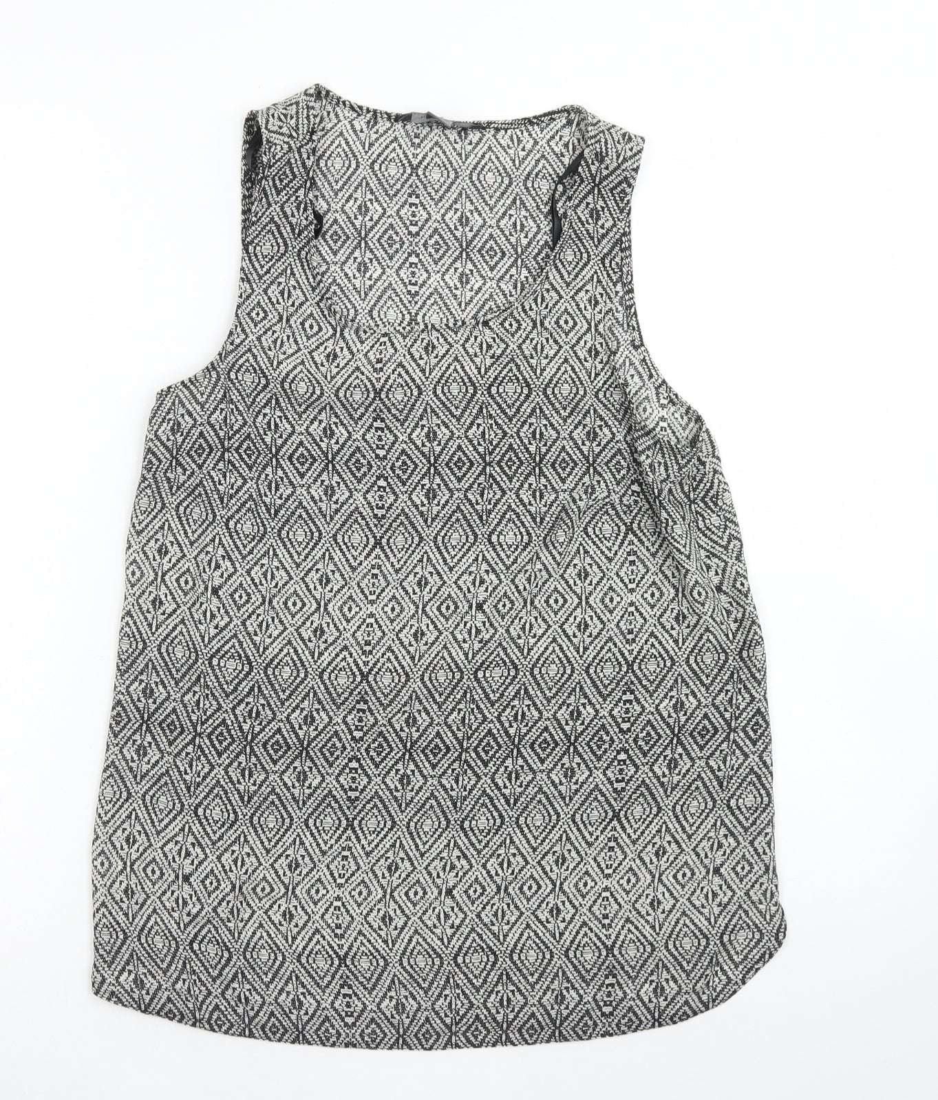 Primark Womens Black Argyle/Diamond Polyester Basic Blouse Size 10 Round Neck