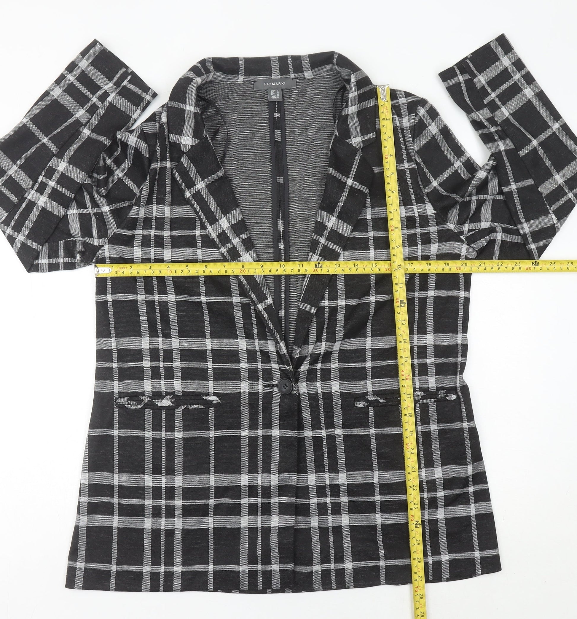 Primark Women's Black Check Blazer UK 14 Regular Fit Single-Breasted