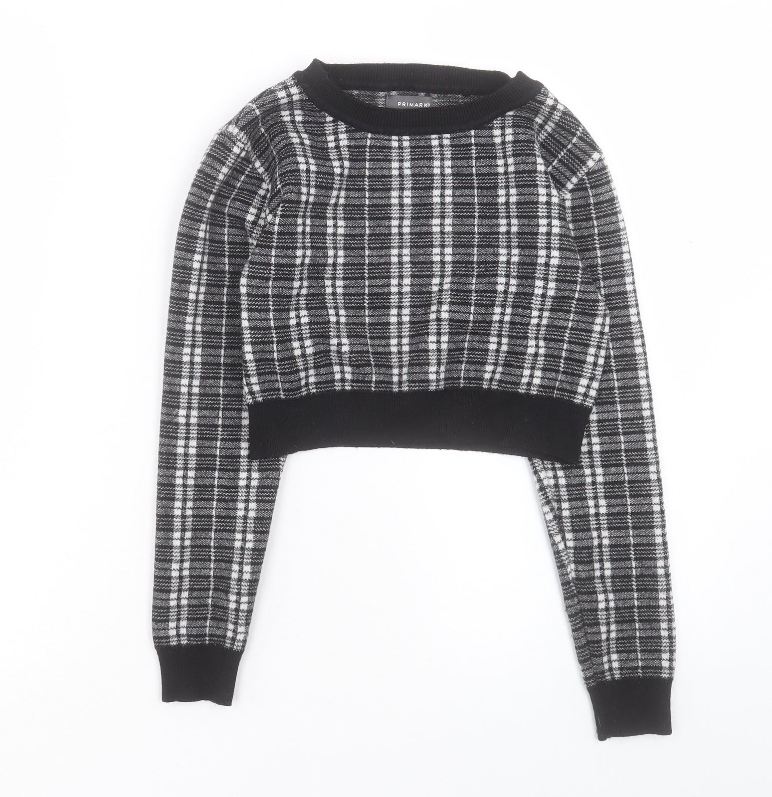 Primark Womens Black Crew Neck Plaid Acrylic Pullover Jumper Size XS - Size 6-8