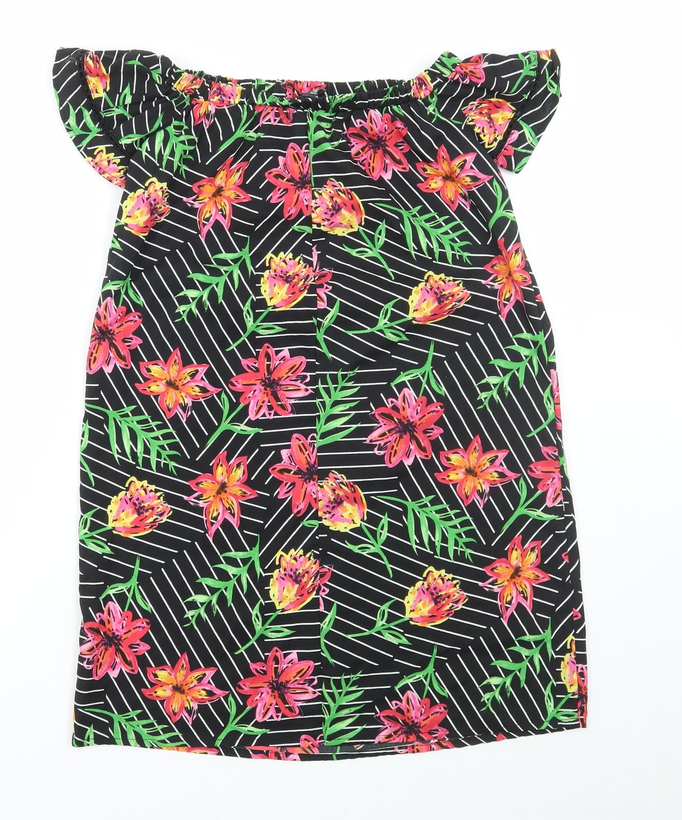 Primark Womens Black Floral Polyester A-Line Size 4 Off the Shoulder Pullover