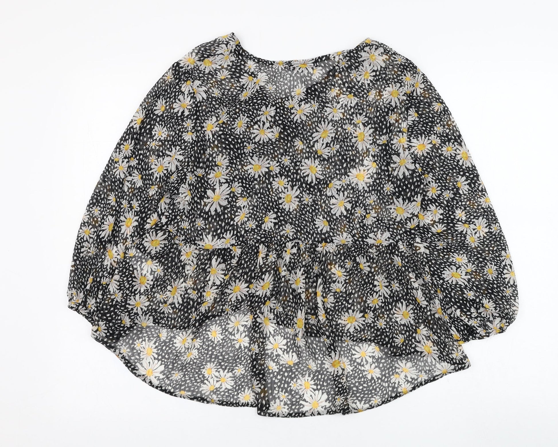 Primark Womens Black Floral Polyester Basic Blouse Size 10 V-Neck