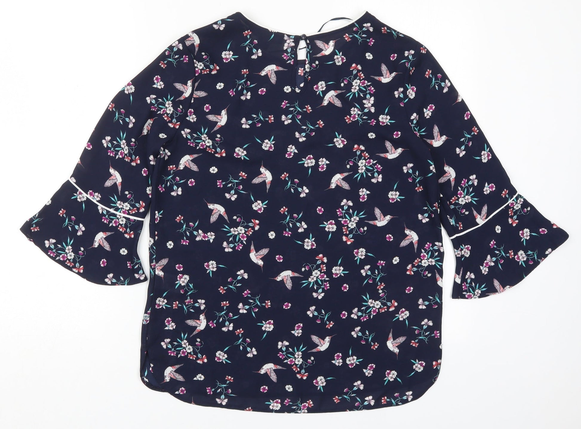 Primark Womens Black Floral Polyester Basic Blouse Size 8 Round Neck - Birds