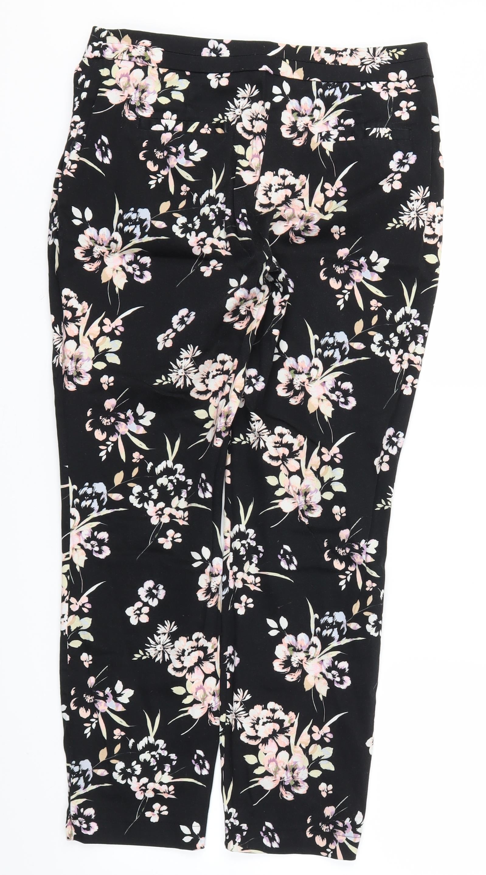 Primark Womens Black Floral Trousers Size 10 L26 in
