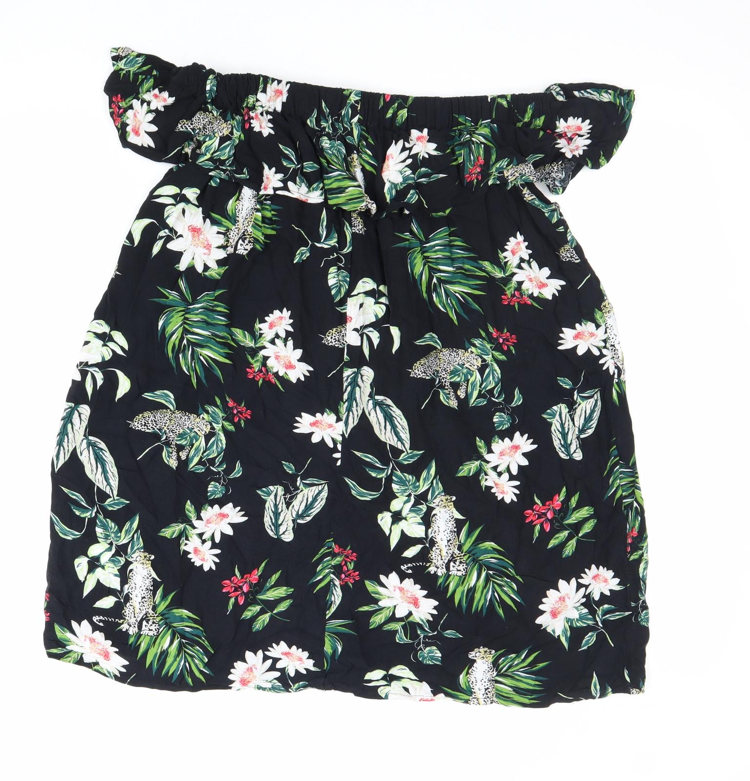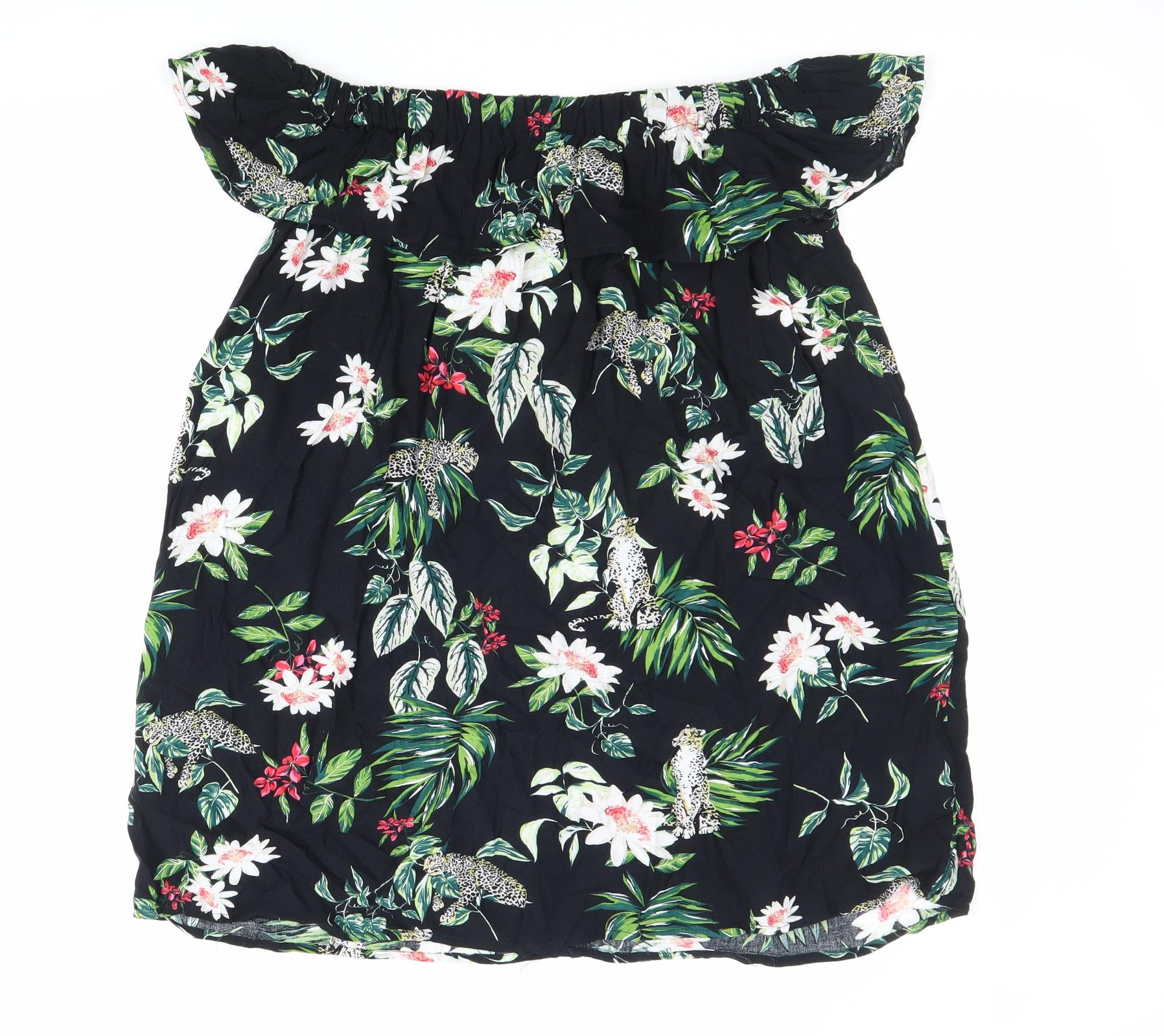 Primark Womens Black Floral Viscose Basic Blouse Size 10 Off the Shoulder