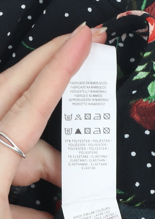 Primark Women's Black Floral Wrap Blouse Size 12 3/4 Sleeve