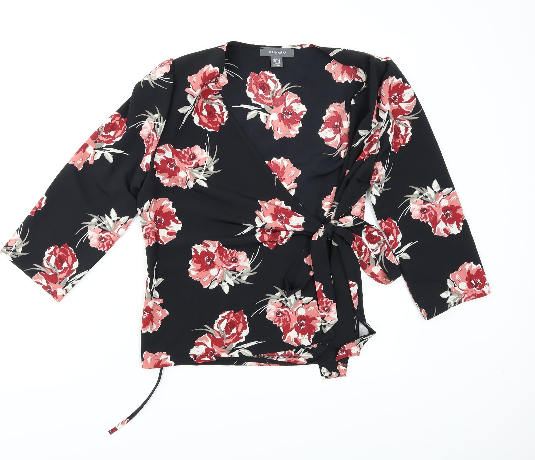 Primark Womens Black Floral Wrap Blouse Size 8
