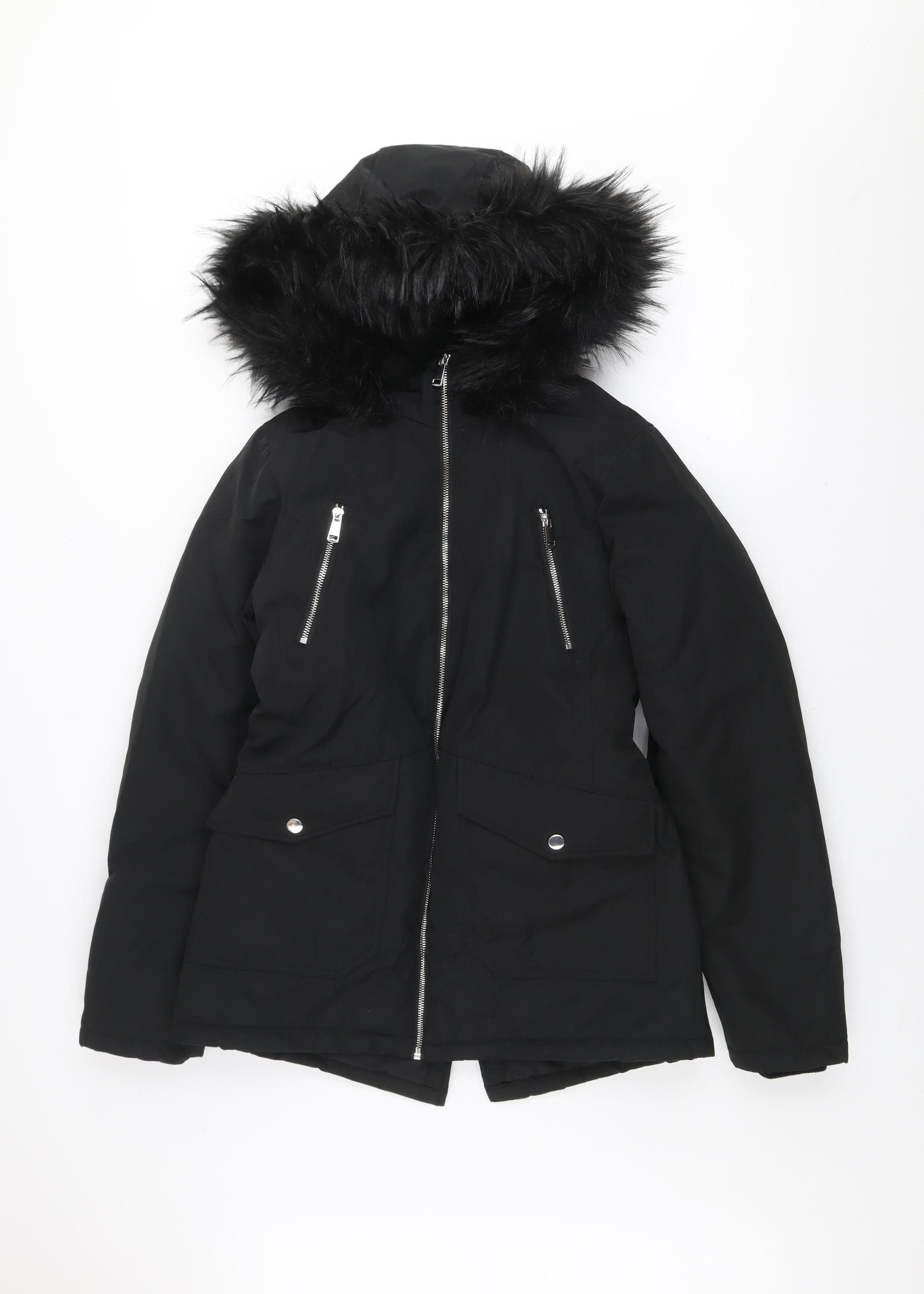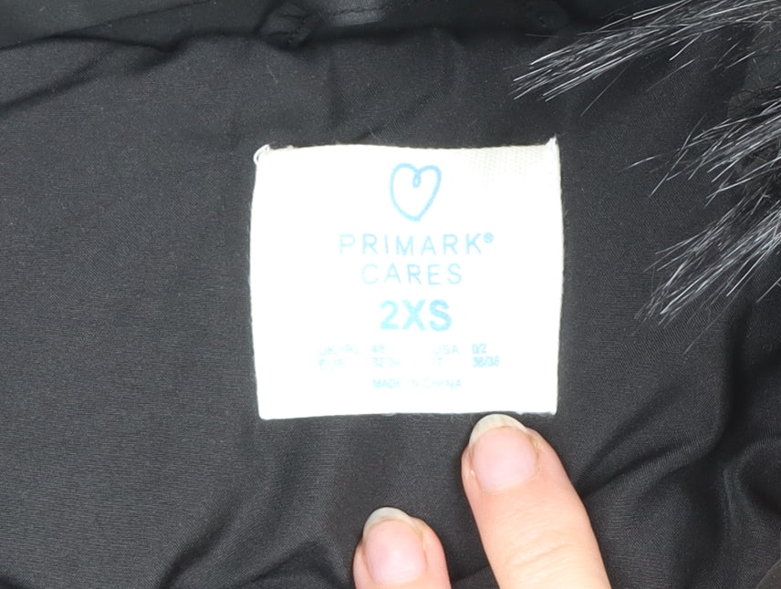 Primark Womens Black Fur Trim Hooded Parka Jacket 2XS