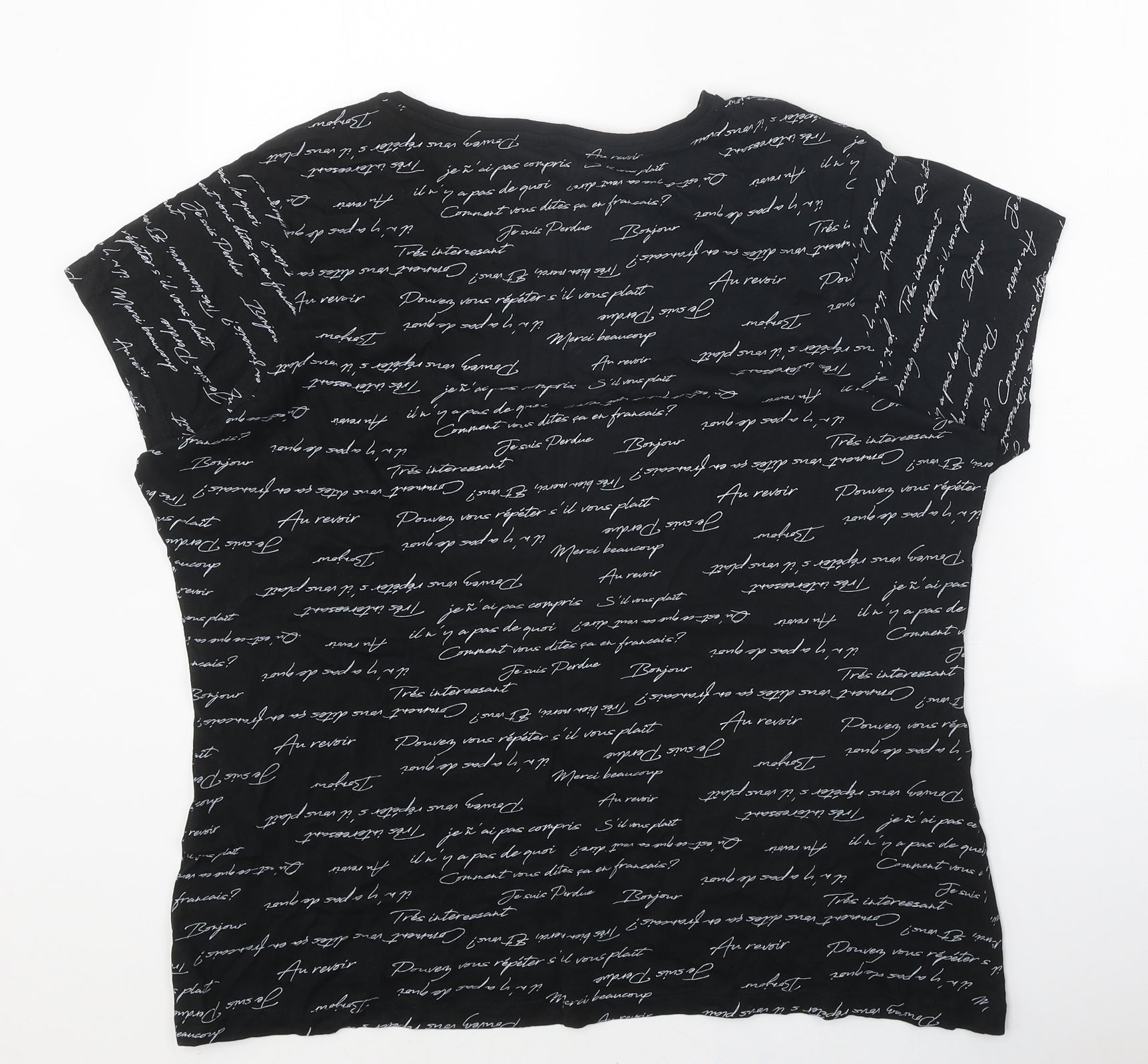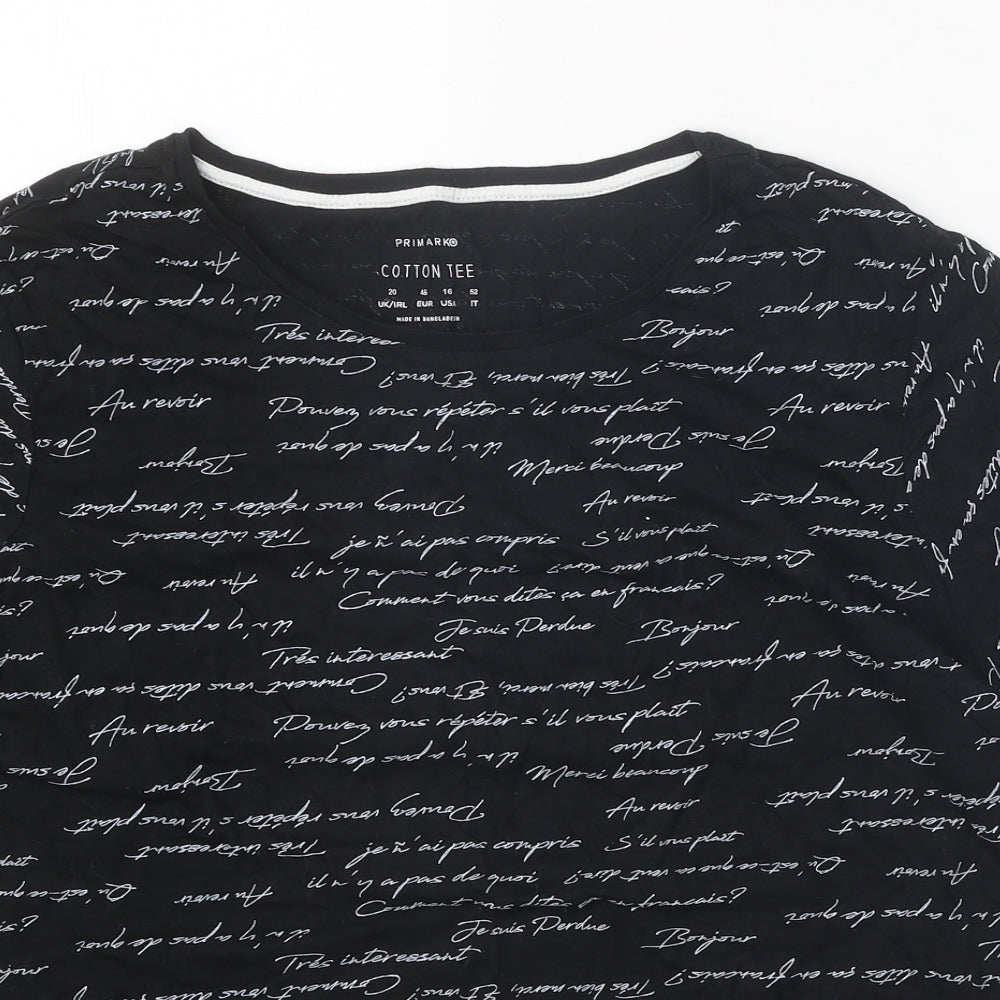 Primark Womens Black Geometric 100% Cotton Basic T-Shirt Size 20 Round Neck